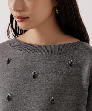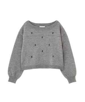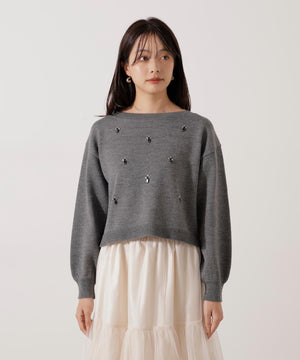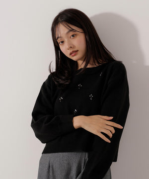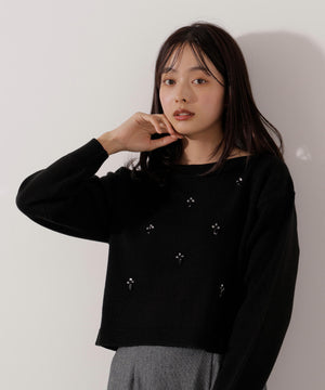 ビジュー付きボックスニット