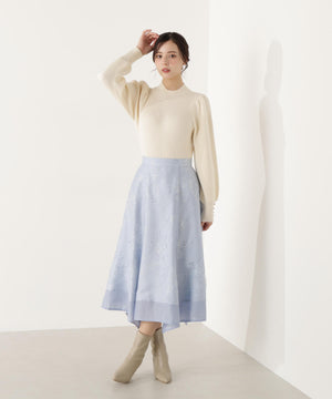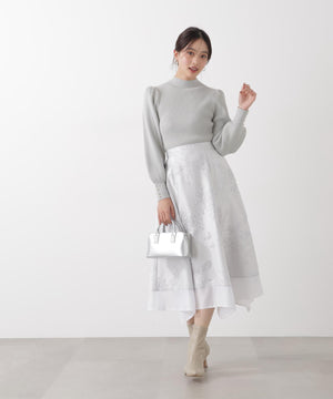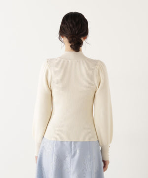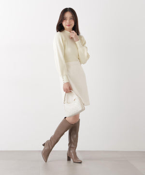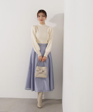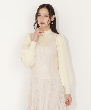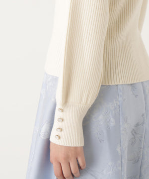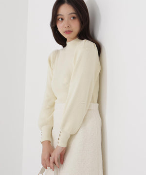 昨年大好評いただいたハイネックボリュームスリーブニットが、春カラーになって再登場!もっちりとした肌触りの良い糸を使用し、程よい肉感で仕上げているので、お洒落と防寒性を両立してくれます。ほどよい高さのハイネックで暖かみがあり、冬のコーディネートに活躍。ジャンスカのインナーとしても着回せます。長めに取った袖口にはきらっとボタンをプラスしつつ、ボリュームスリーブがフェミニンな雰囲気を演出します。