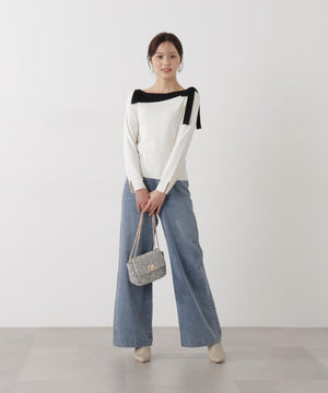 サイドリボン総針ニット【ブルー:official site・有楽町マルイ限定】