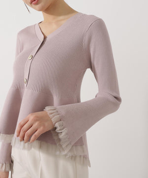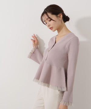 【追加生産予約】シアー切替ペプラムニット【モカ:WEB限定カラー】