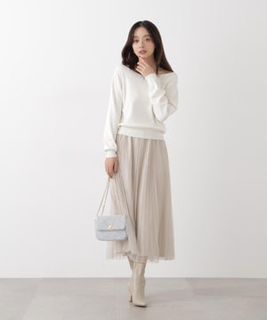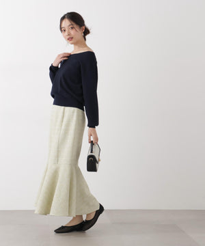 デコルテラインを調節できるシンプルニット。お好みに合わせてデコルテラインをアレンジしながら、通勤シーンからオフの日まで幅広く活躍してくれます。着心地も良く、普段使いからお出かけまで着回せます。