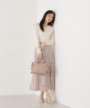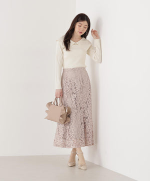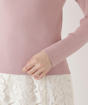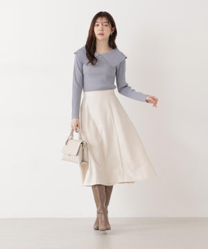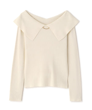 上品なカーブバーがアクセントになったビッグカラーニット。バーは取り外しできるので、シーンに合わせて雰囲気の変化を楽しめます。しっかりとした編地で肩まわりを程よくホールドでき、さりげない肌見せが叶います。