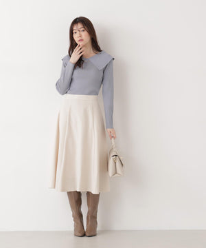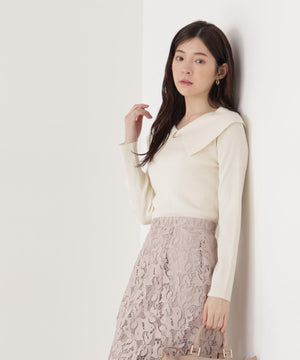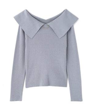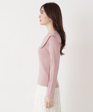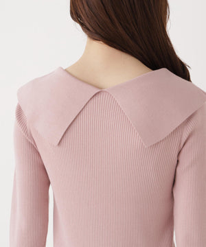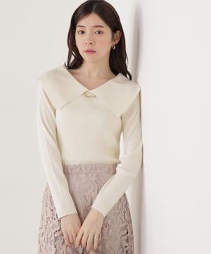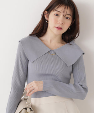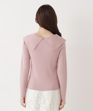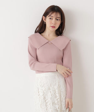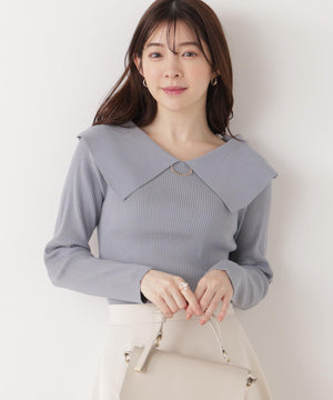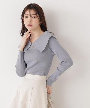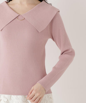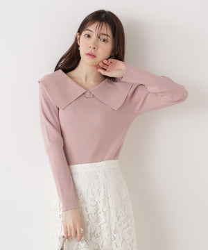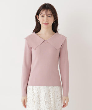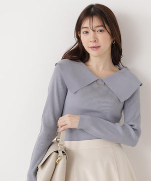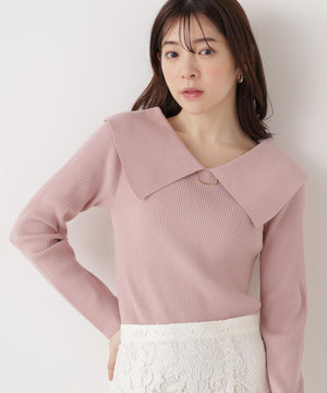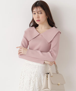 <ウォッシャブル/UV>バー付きビッグ襟ニット