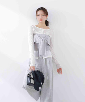 リボンディテールがかわいいニットビスチェ。シャツやカットソーにレイヤードするプラスワンアイテムとしてはもちろん、一枚着で上からシャツやジャケットを羽織るスタイルもおすすめ。シンプルなコーディネートを引き立てるデザインです。