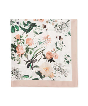 旬なスタイルに見せてくれるフラワー柄スカーフ。フェミニンな雰囲気の花柄デザインがキャッチーなアイテムです。首に巻いたり、バッグの持ち手に結ぶなど、様々なアレンジが楽しめます。