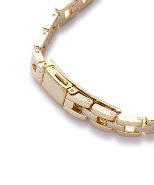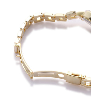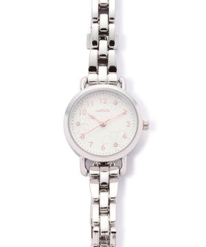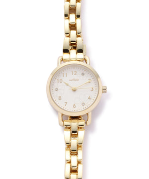 さり気ないフラワーモチーフがフェミニンな雰囲気のメタルウォッチ。身につけるだけで女性らしい手元に見せてくれます。文字盤には秒針つき。オンにもオフシーンにも合わせやすいシーズンレスなアイテムです。