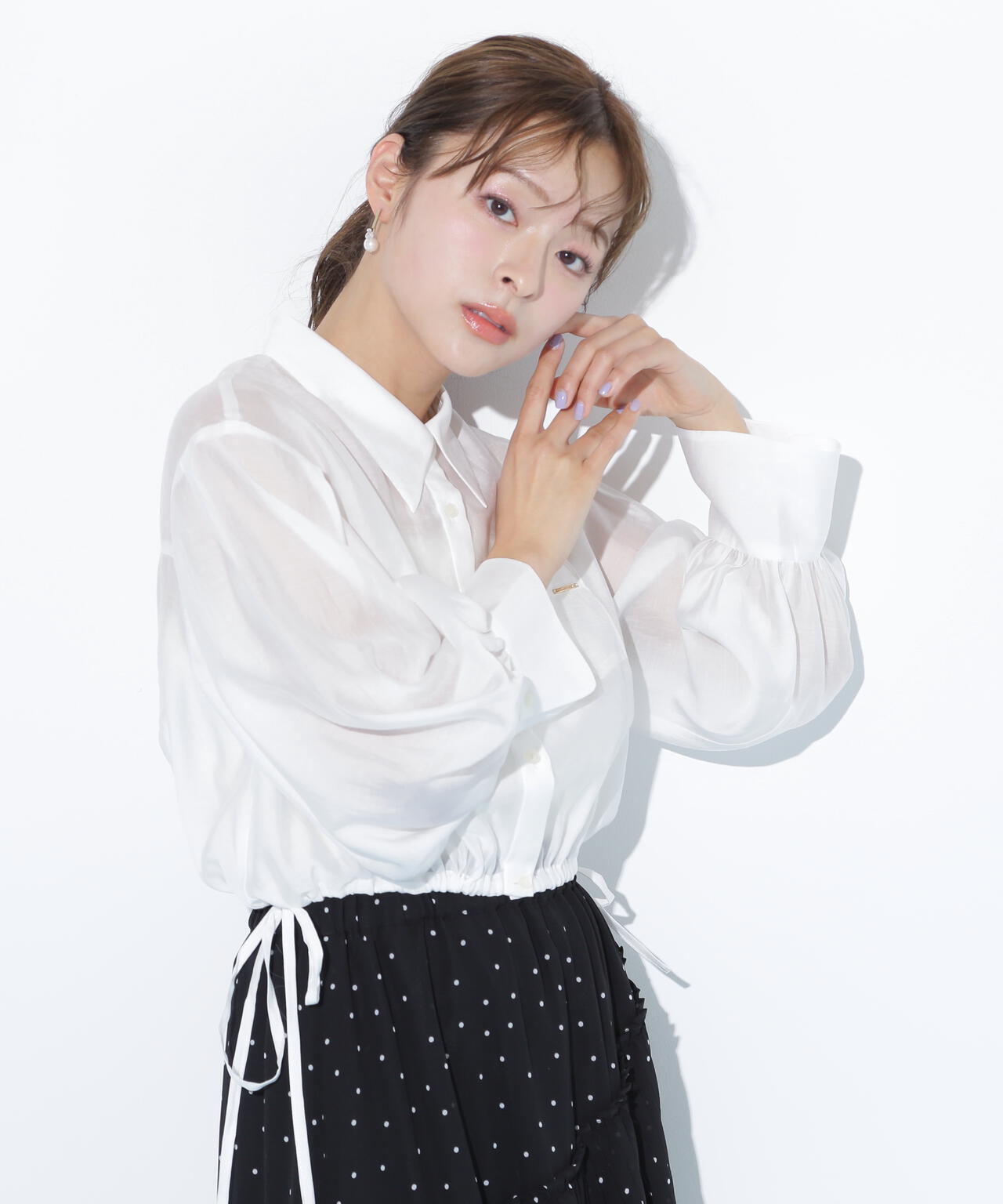 1枚着でも羽織りでも使えるシアーシャツ。これからの季節にぴったりな程よい透け感とハリ感があり、冷房対策にもおすすめ。シアー素材なのでお持ちのインナーを合わせるのが◎。裾はサイドリボンで絞れる仕様です。JILL by JILL STUARTでご用意しているボトムスとバランスが取りやすい短丈で、ノースリーブなどのキャミワンピースにも好相性です。※撮影時照明の関係により、色味が違って見える場合がございます。