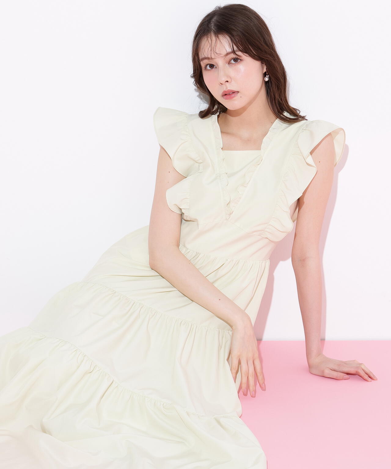 肌離れのよい綿タッチな素材をふんだんに使ったティアードワンピース。襟元はミニフリルとマチ付きなのでVネックでも安心して着ていただけます。袖はフリルスリーブで気になる二の腕をカバー。アシンメトリーに切り替えを入れたティアードシルエットもポイントです。※撮影時照明の関係により、色味が違って見える場合がございます。