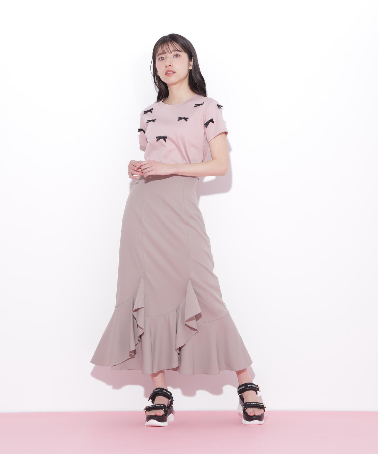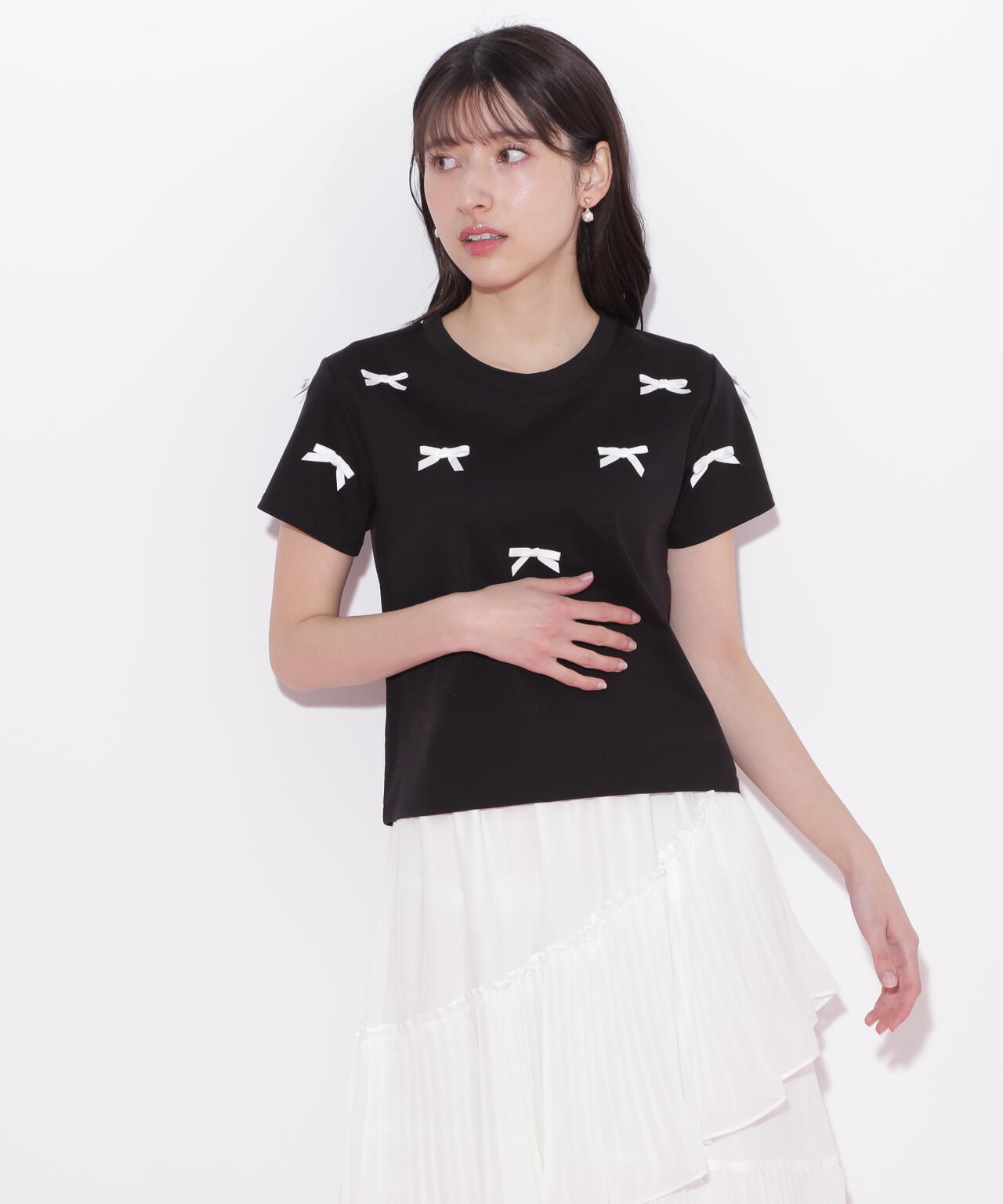 配色リボンがキャッチーな着映えTシャツ。リボンが遊び心をプラスし、シンプルながらも1枚で華やかな印象に見せてくれます。可愛らしさの中に程よいカジュアル感があり、デイリーに活躍。デニムやスカート、ショートパンツなど幅広いボトムスと相性が良く、フェミニンカジュアルからストリートファッションまで楽しめます。※撮影時照明の関係により、色味が違って見える場合がございます。