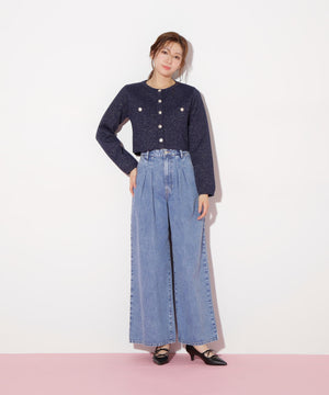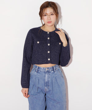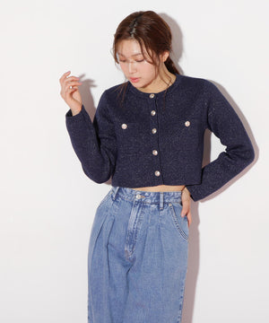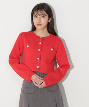 ジャケットライクで高見えするニットカーディガン。程よい厚みとハリ感のある編地なので、ロングシーズン着ていただけます。ジャケットライクなニットはラメ糸が入っているので品よく光り、マリン調のゴールドカラー釦も艶めきポイント。ベーシックなデザインなので着回し力が高く、鮮やかなカラーが春の気分を盛り上げてくれます。※撮影時照明の関係により、色味が違って見える場合がございます。
