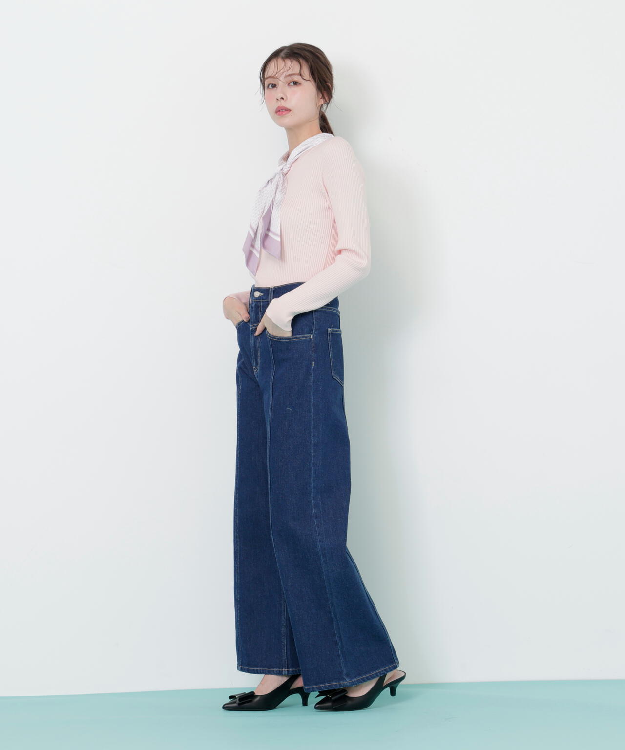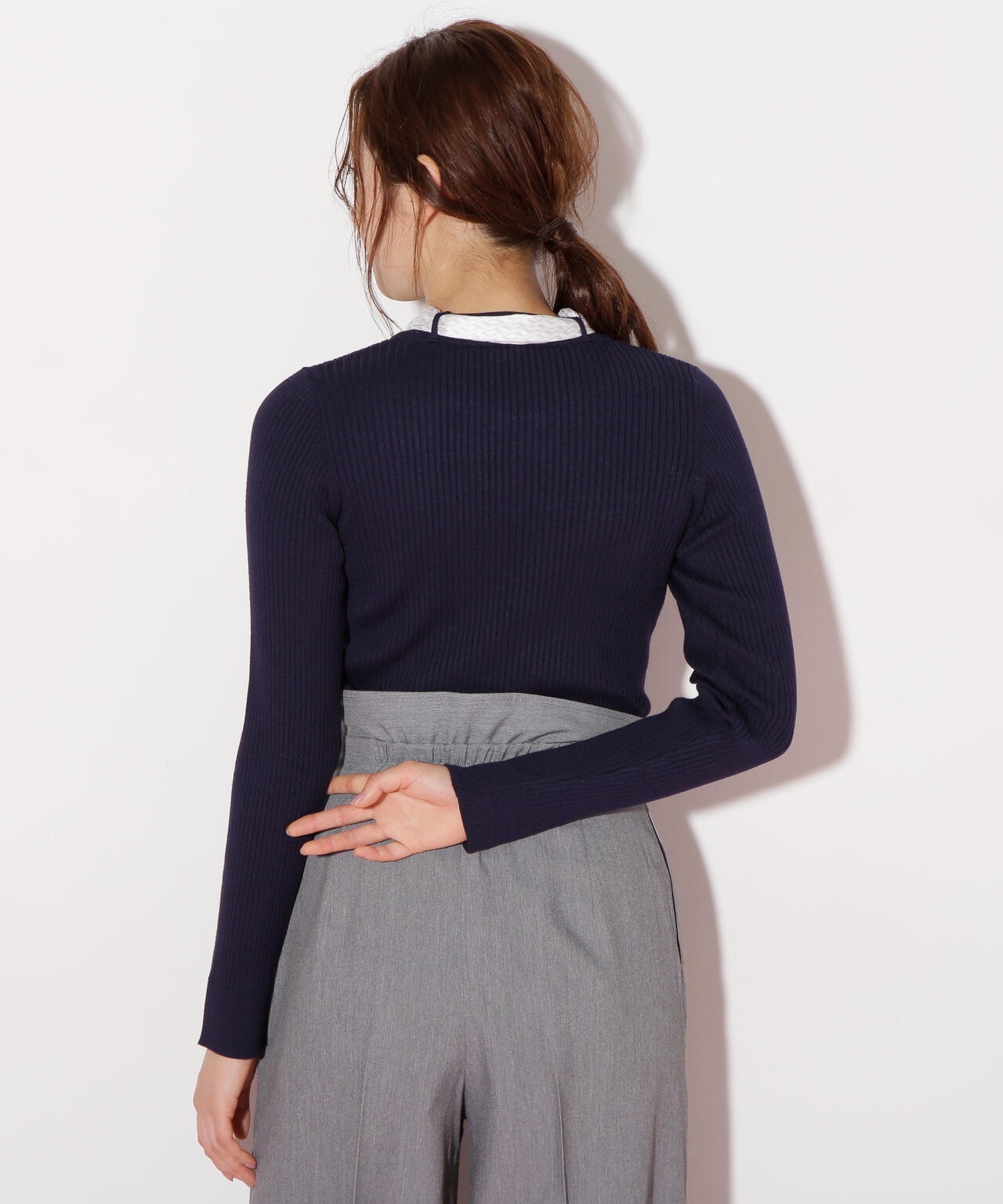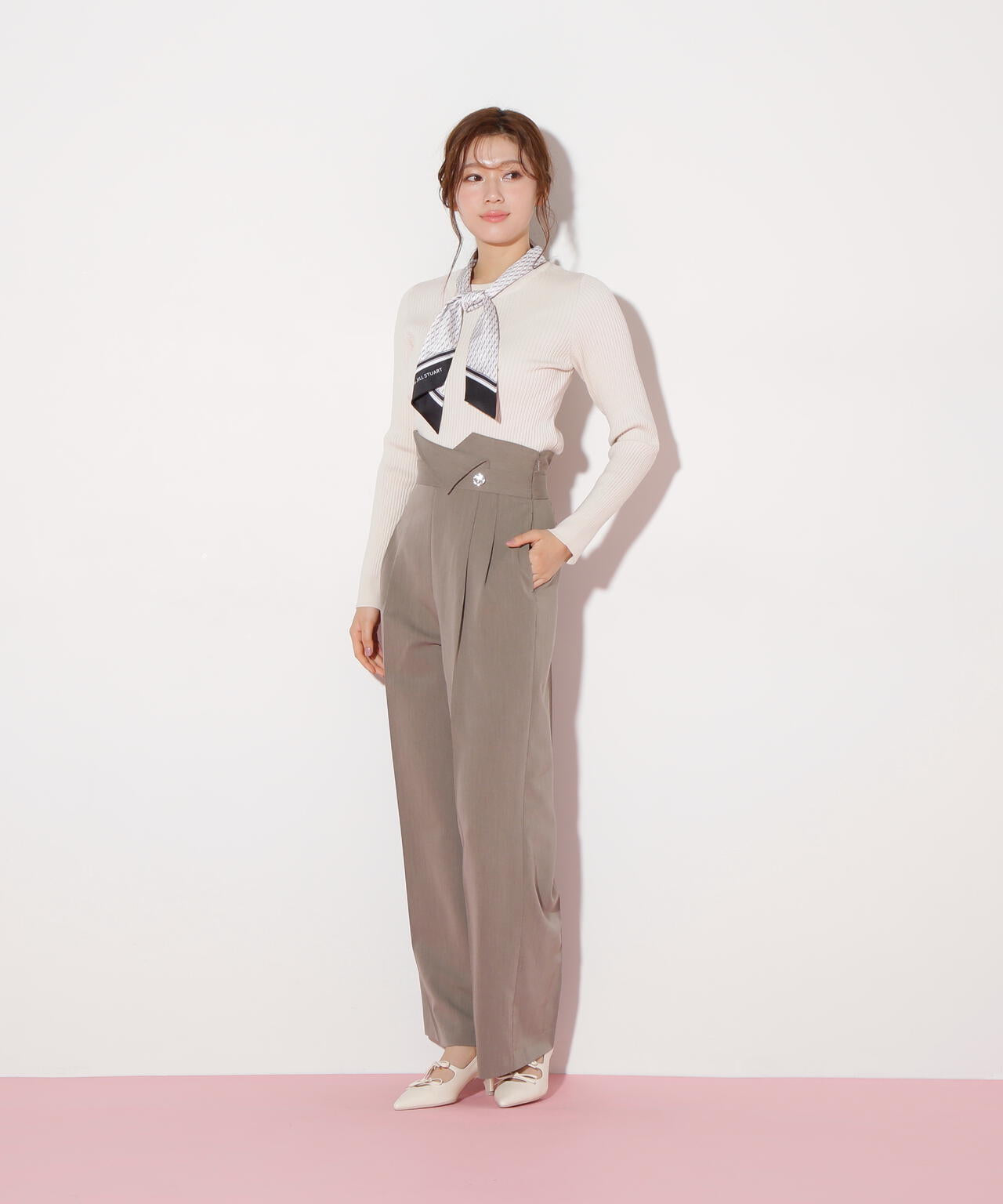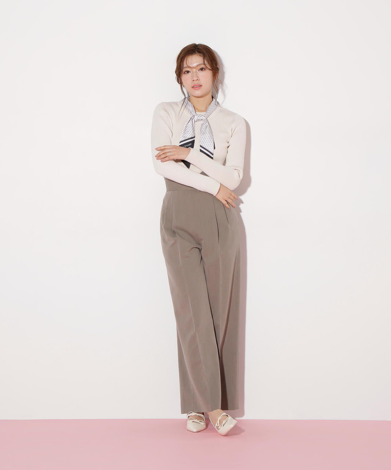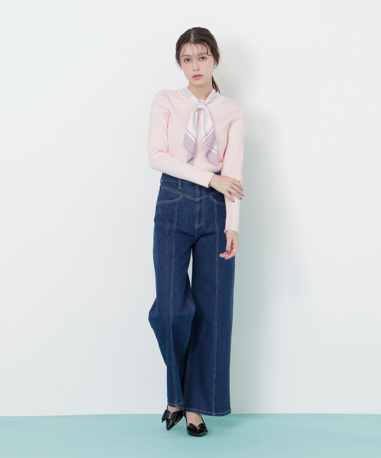 JILL by JILL STUARTオリジナル柄スカーフ付きニット。チェックを幾何学柄風にしてポイントでロゴを入れた、オリジナル柄スカーフです。スカーフはタテに4つ折りしてループに通し、結んでから先を開くとキレイに決まります。後ろのループからスカーフを取ると、ボトルネックのシンプルニットとしても使えるデザイン。ボトムスを選ばず着回せます。ネイビーはトレンドのグリーンカラーをスカーフに取り入ているのでおススメです。※撮影時照明の関係により、色味が違って見える場合がございます。