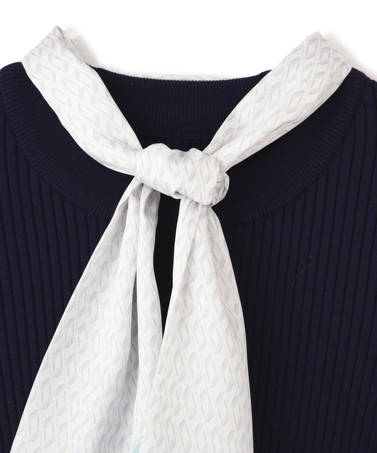 幾何チェック柄スカーフ付きリブニット