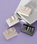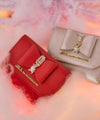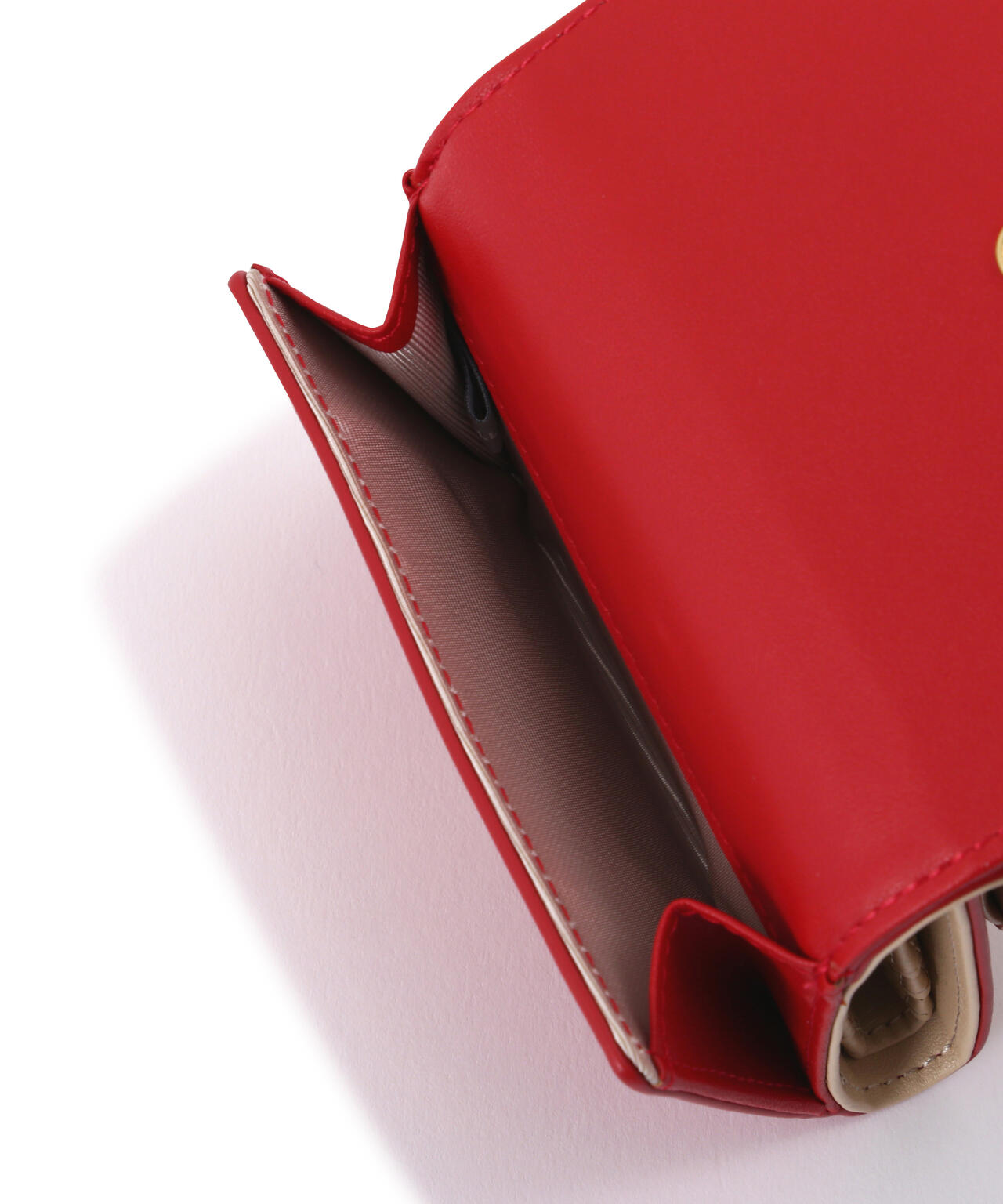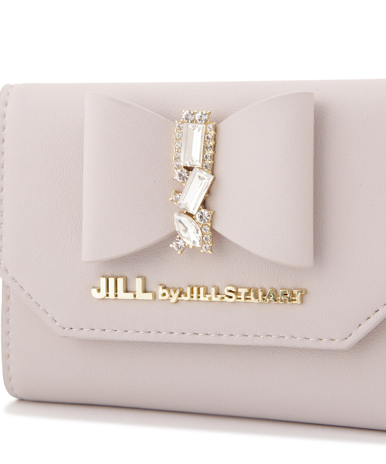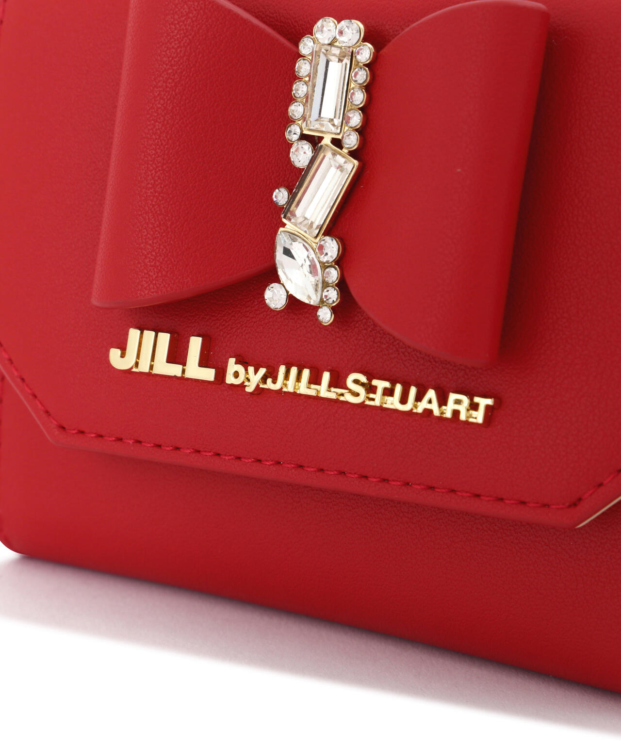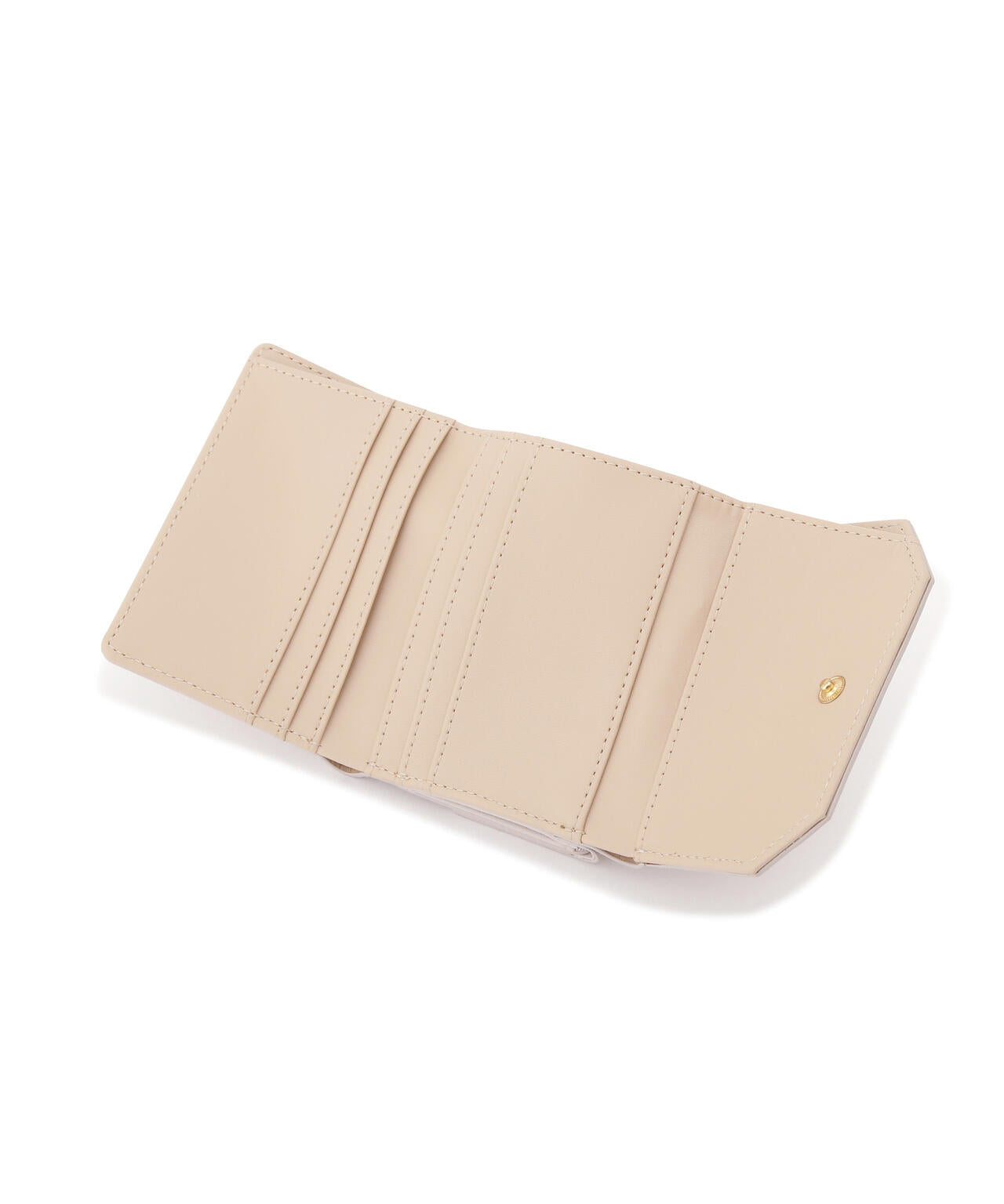 きらめく装飾でリボンをデコレーションしたレディライクなミニ財布。スナップボタン開閉でコインケース、紙幣とカード類を入れられる便利なデザインです。小さいバッグの中に入れやすい三つ折りのコンパクトなサイズなので、すっきり持ちたい方にもお勧めです。※撮影時照明の関係により、色味が違って見える場合がございます。