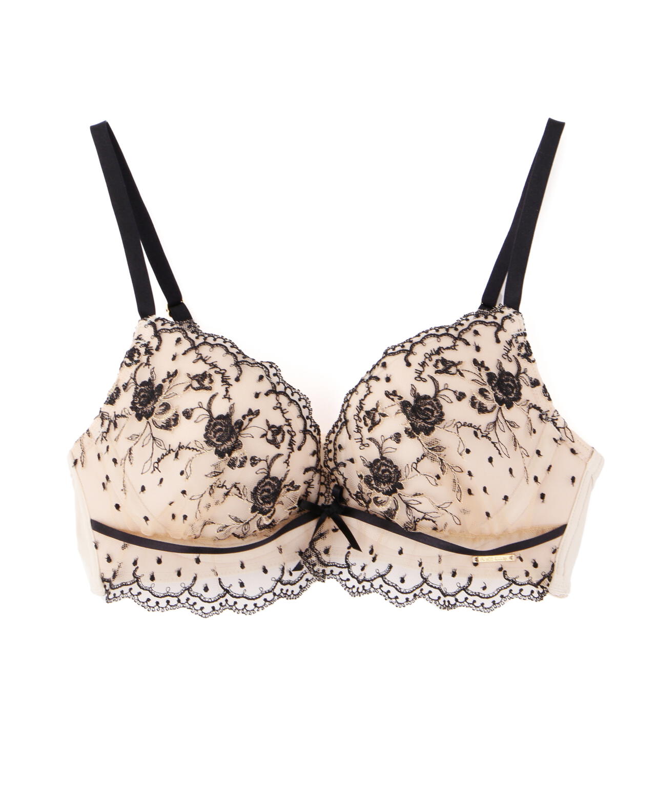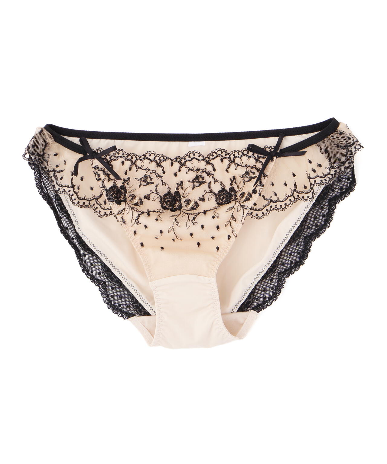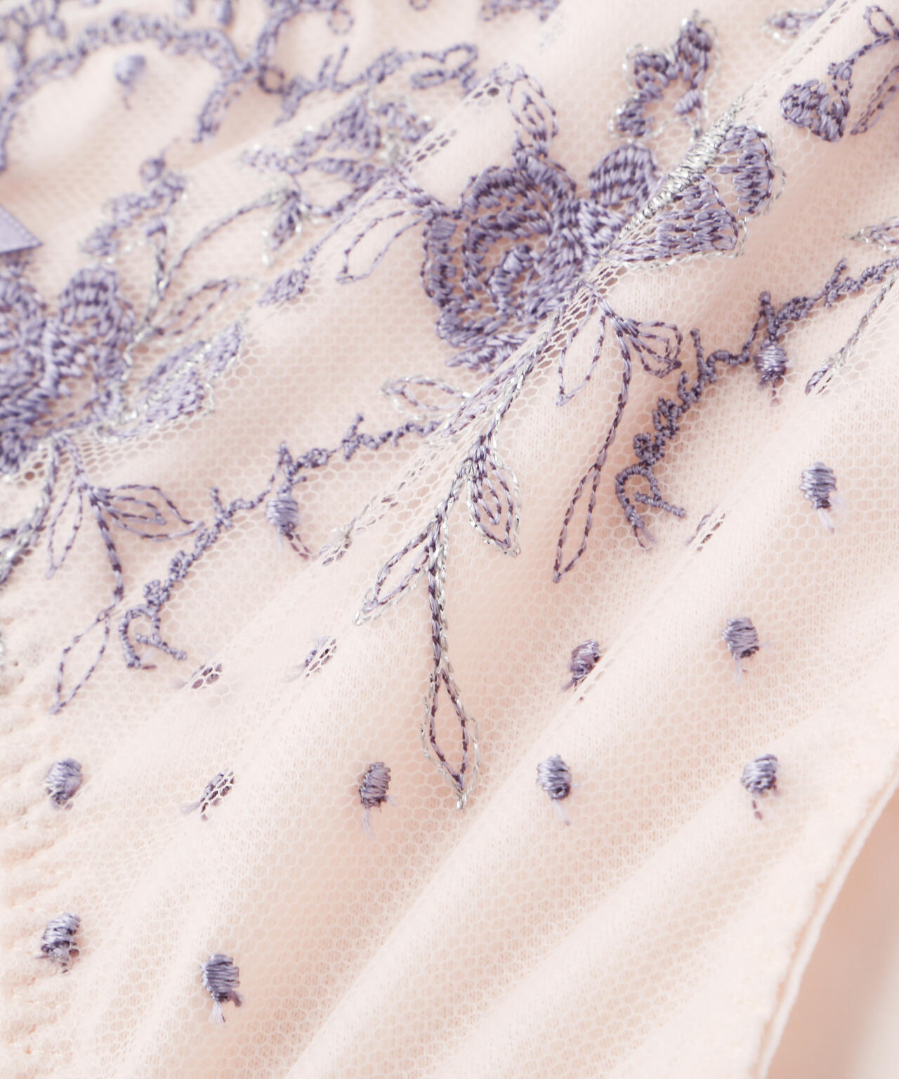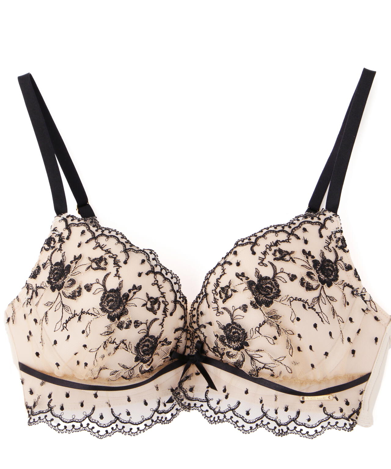「PEACH JOHN×JILL by JILL STUART」コラボレーション第二弾!こちらは3サイズ展開のブラジャー&ショーツのセットです。Pサイズ:「ブラC65×ショーツS」Sサイズ:「ブラC70×ショーツM」Mサイズ:「ブラD70×ショーツM」となります。ドット×小花レースが可愛らしいエンブロイダリーレースを使用したデザイン。スカラップ部分は、葉っぱや小花で構成されたアーチがアクセント。カップとアンダーのレースはギャザーを寄せているので、フェミニンな表情に見せてくれます。※撮影時照明の関係により、色味が違って見える場合がございます。