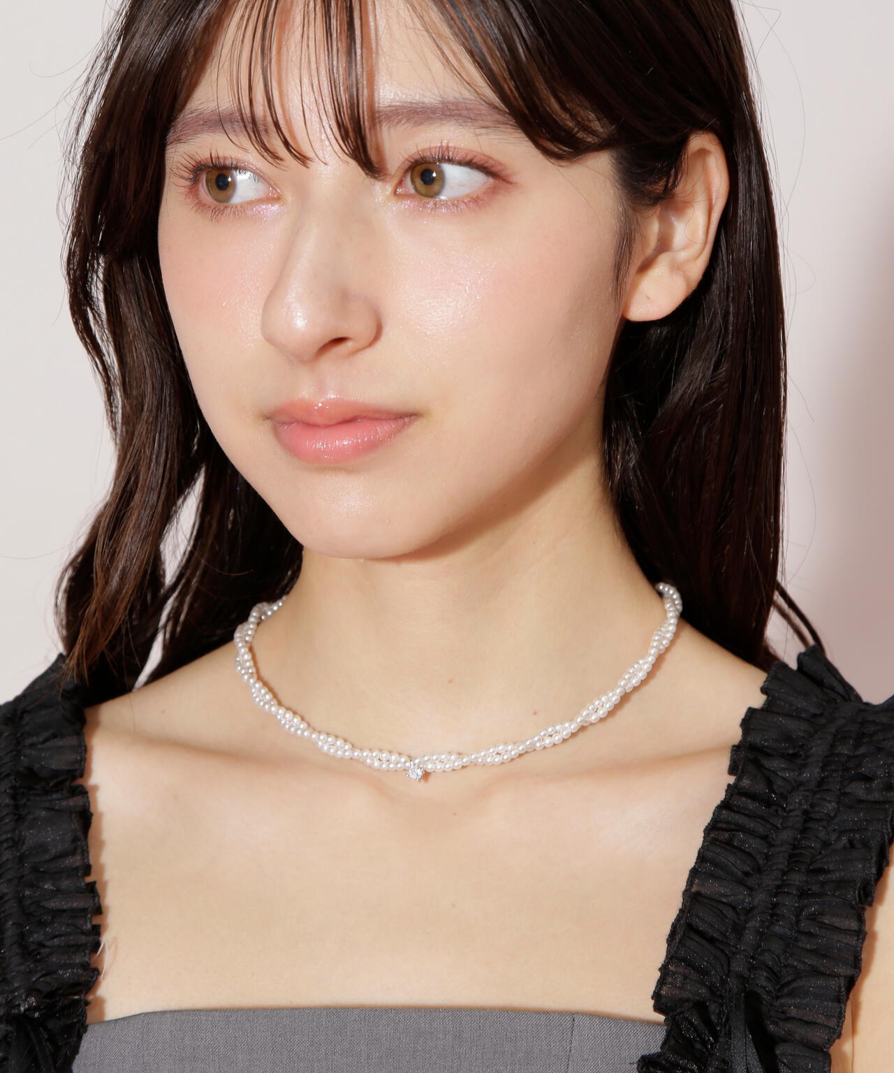 パール調ネックレスを重ねづけしたように見せるツイストデザインが華やかなネックレス。ほどよいボリューム感をプラスでき、艶めくトップパーツも映えて顔まわりを印象的に見せてくれます。デイリーはもちろん、お呼ばれなどのキレイめシーンにもオススメのアクセサリーです。※撮影時照明の関係により、色味が違って見える場合がございます。