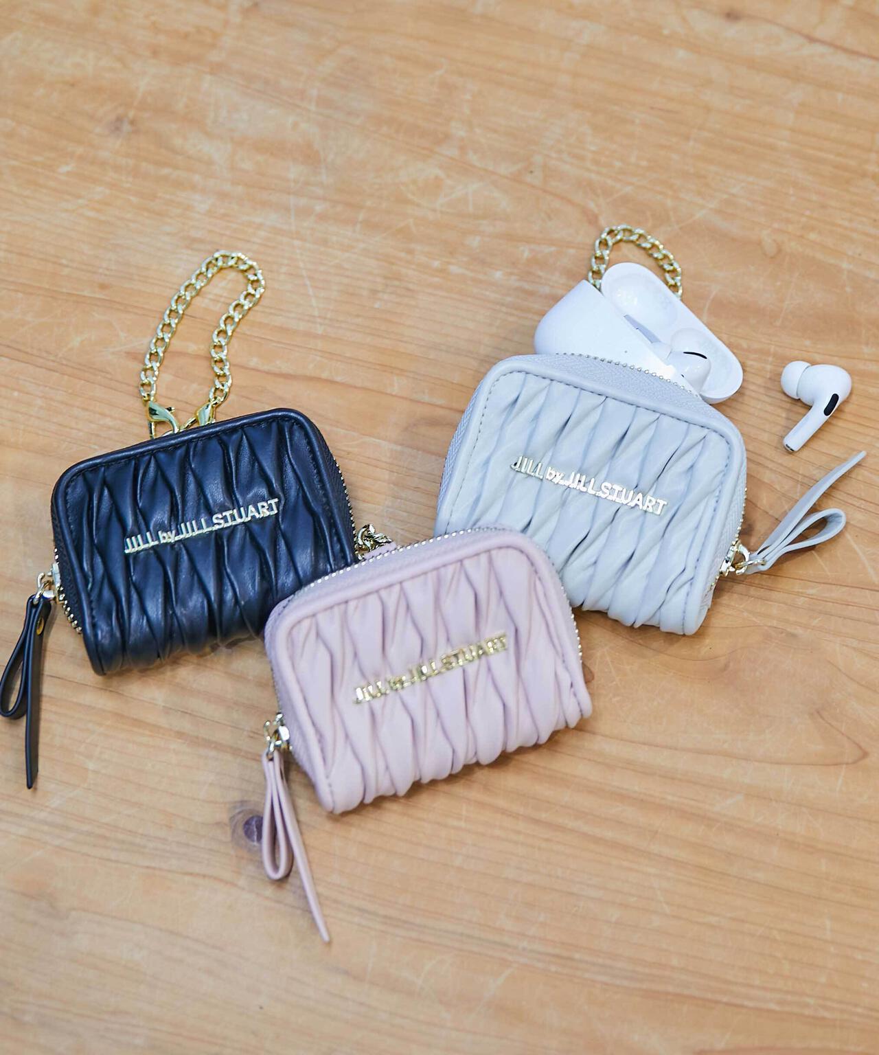 SVP(スタッフと共同デザイン企画)シリーズ。Produce a new meをテーマに新生活での環境において、自分らしさをさりげなくアップデートできるアイテムとして展開しています。ワイヤレスイヤホンやリップなど、すぐに取り出せると嬉しい小物入れとしてデザインされた、ポーチタイプのチャームです。JILL by JILL STUARTのアイコンを象徴する素材とロゴの配置によるキャッチーなデザイン。SVPシリーズのバッグ(店舗商品番号125-5184007・125-5181047)と揃えても似合うデザインです。※撮影時照明の関係により、色味が違って見える場合がございます。
