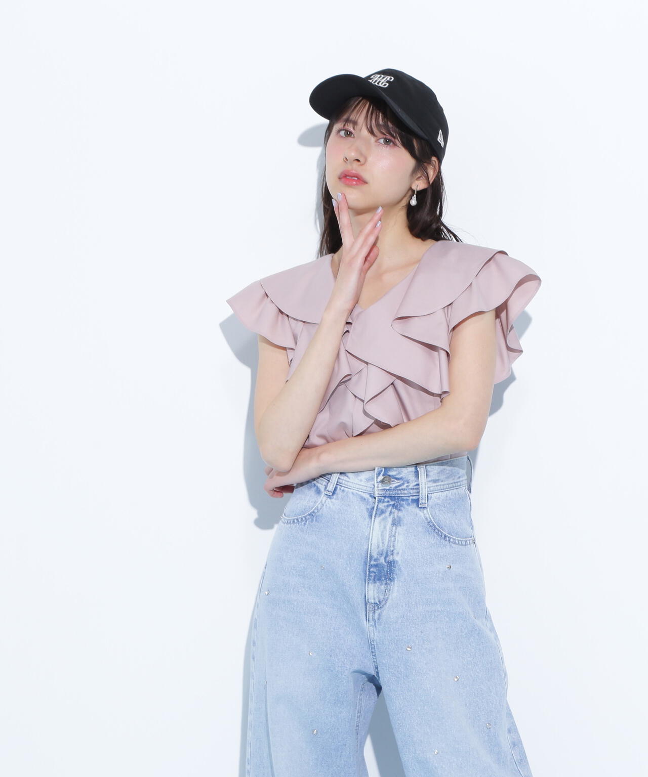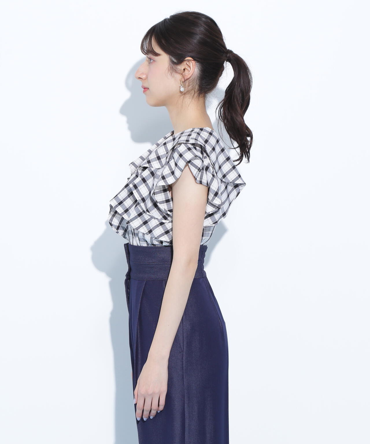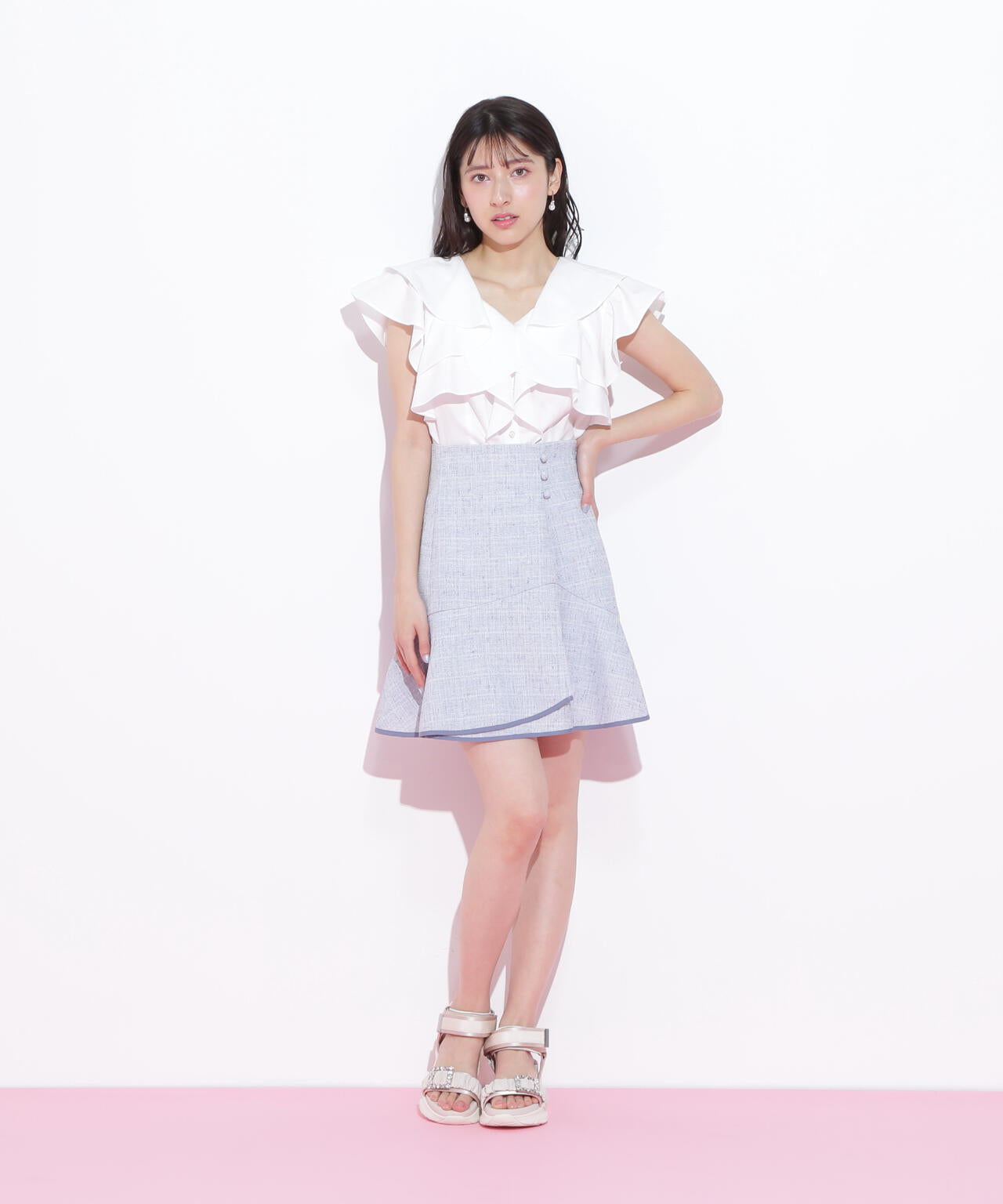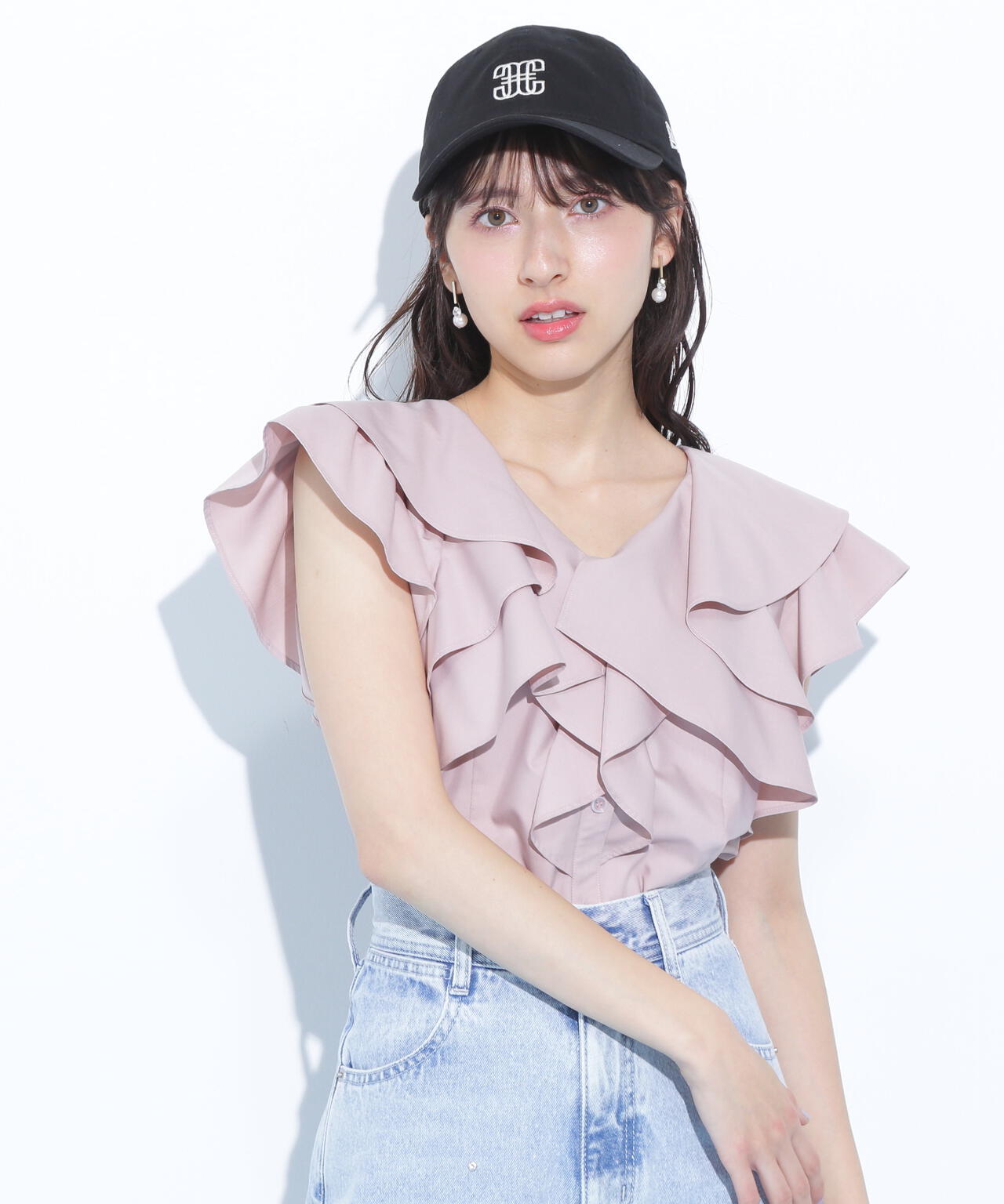 綿タッチで肌離れの良い素材を使用したフリルブラウス。肩のボタンでフリル袖を外し、肩開きデザインにも着られる2wayデザインです。軽量ながらも透け感がなく、甘すぎないフリルデザインのため、デニムはもちろん、フラワープリントフレアスカート(店舗商品番号125-5220003)とのコーディネートもオススメです。※撮影時照明の関係により、色味が違って見える場合がございます。