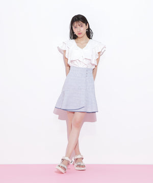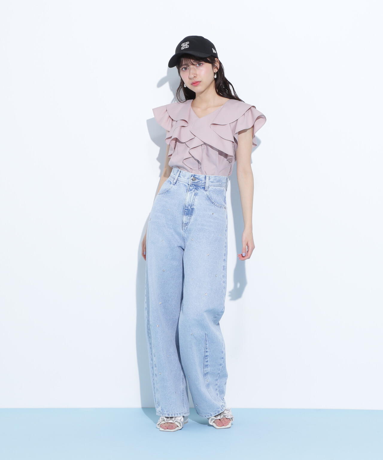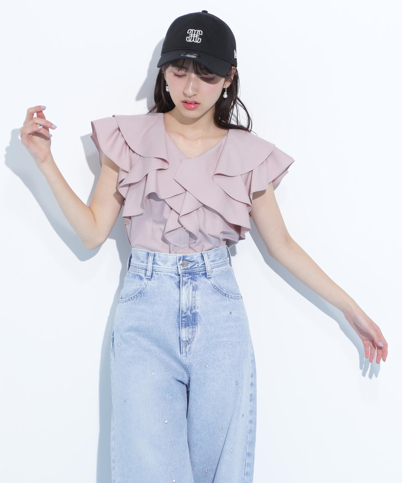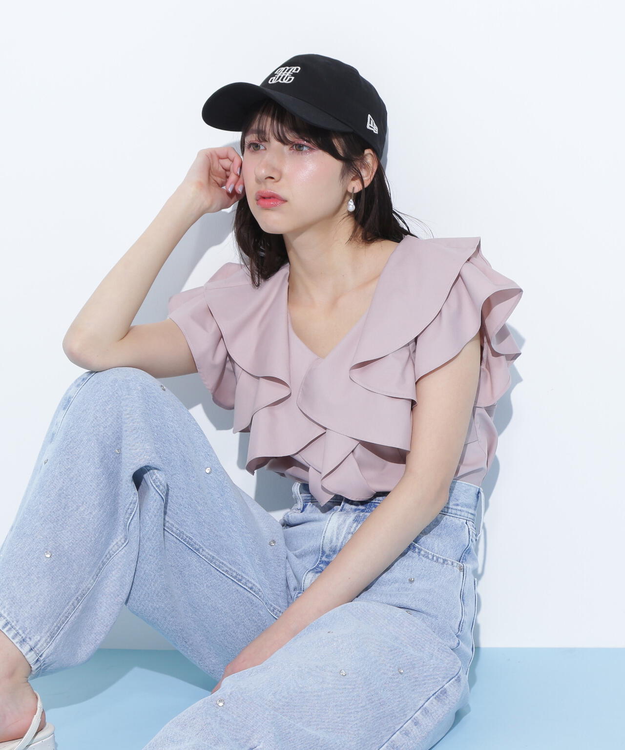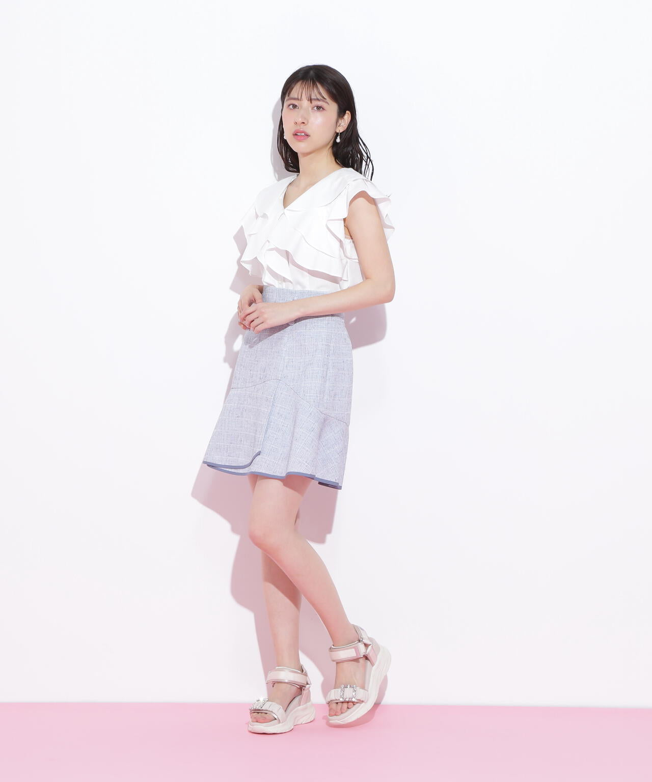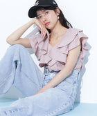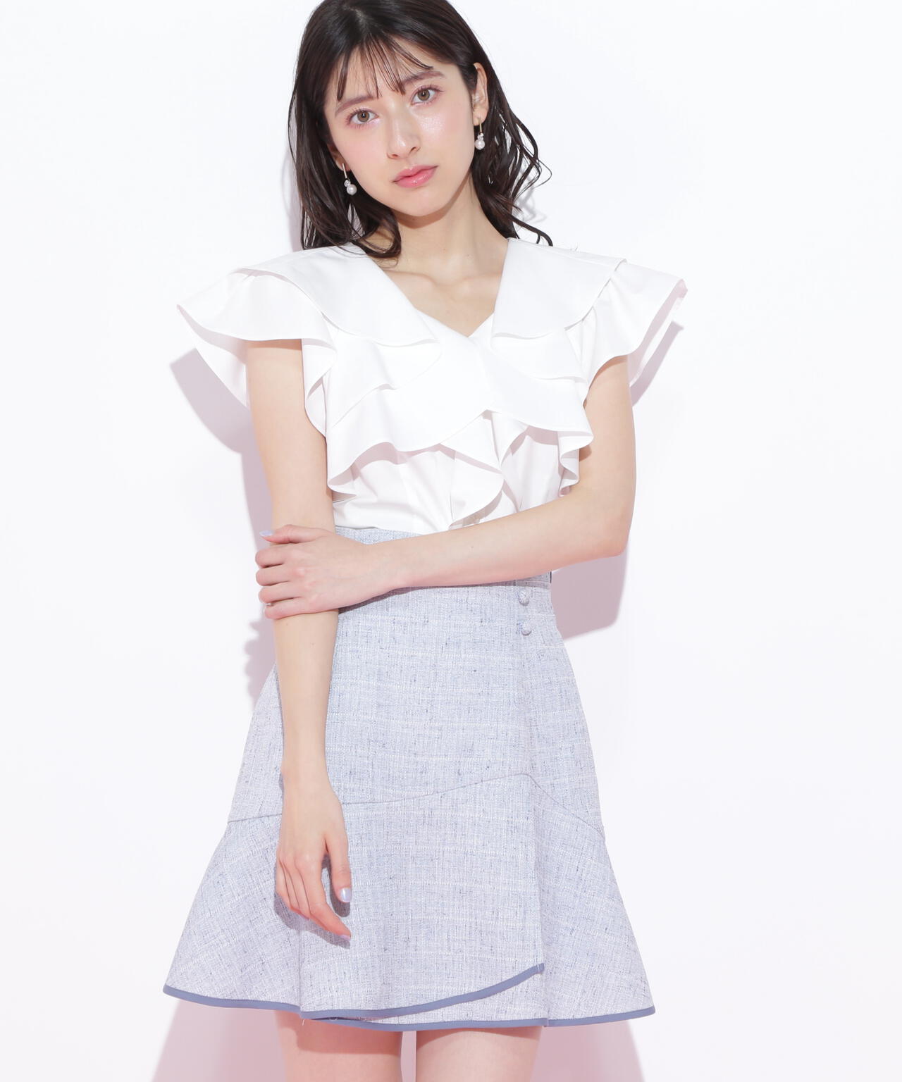 綿タッチで肌離れの良い素材を使用したフリルブラウス。肩のボタンでフリル袖を外し、肩開きデザインにも着られる2wayデザインです。軽量ながらも透け感がなく、甘すぎないフリルデザインのため、デニムはもちろん、フラワープリントフレアスカート(店舗商品番号125-5220003)とのコーディネートもオススメです。※撮影時照明の関係により、色味が違って見える場合がございます。