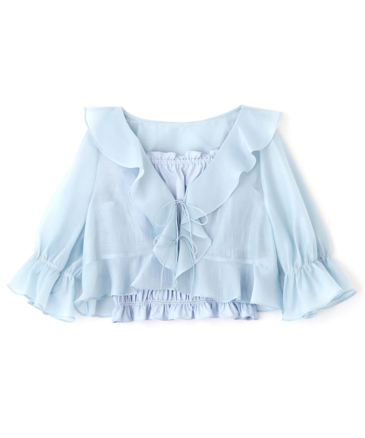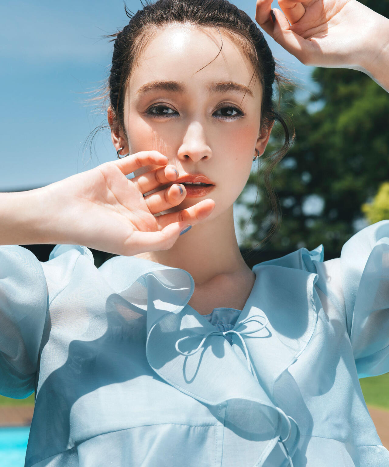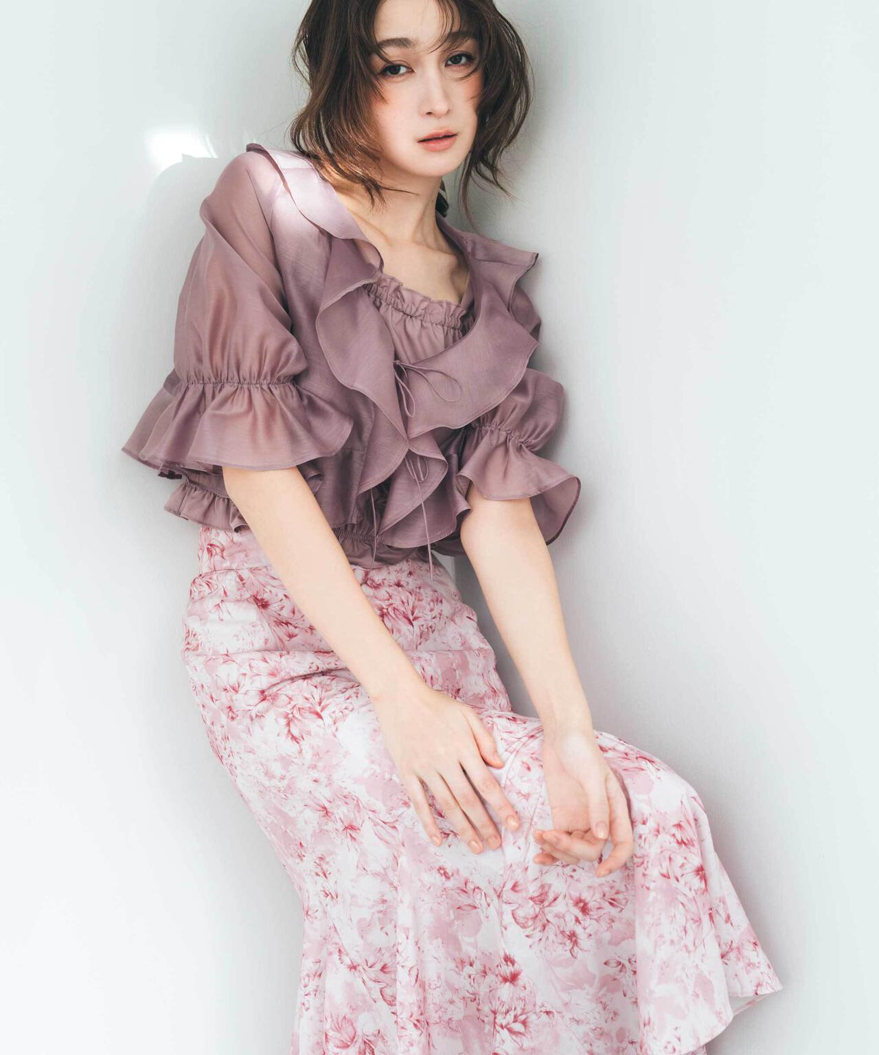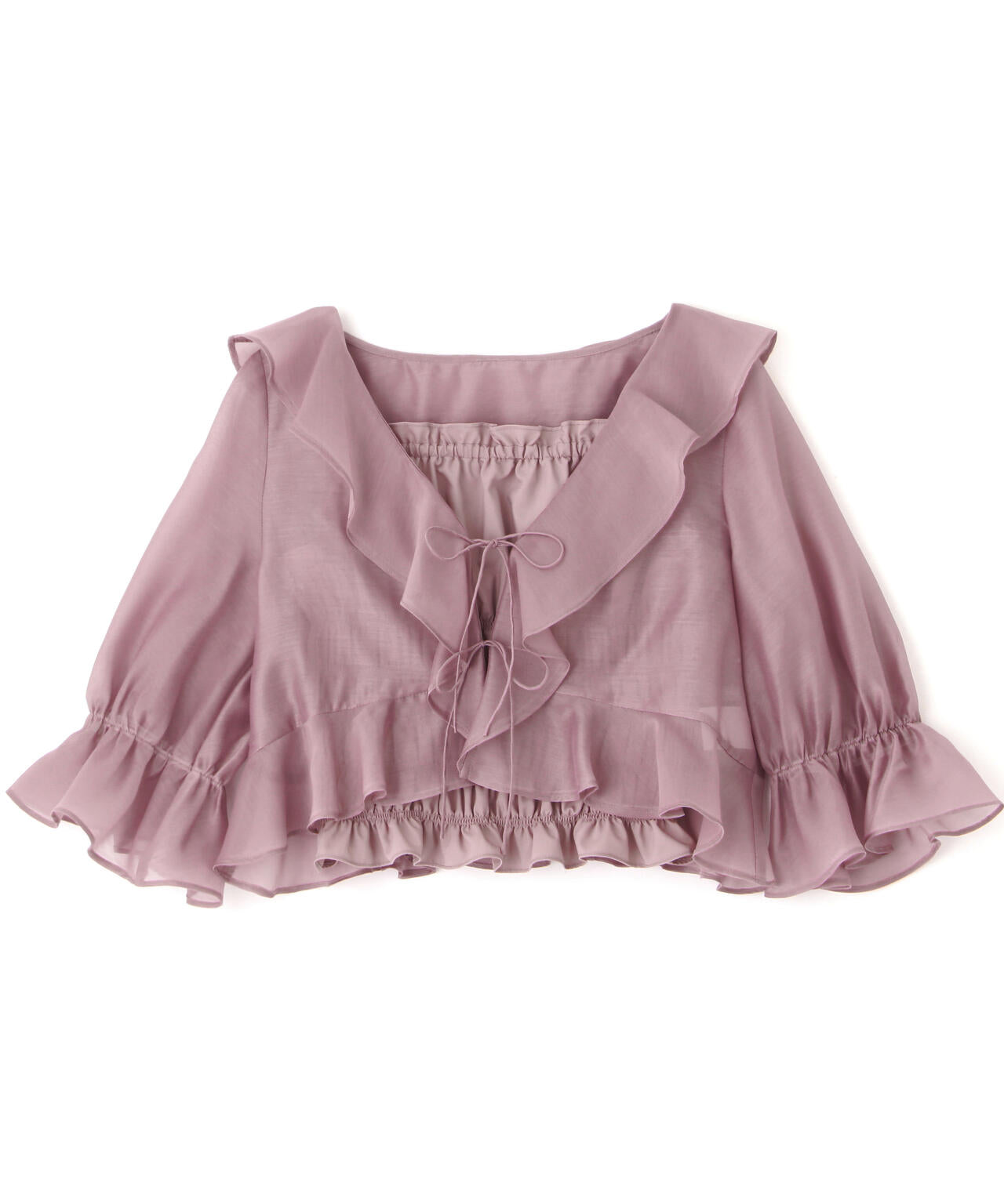 それぞれ単品使いもできる着回し力の高さとトレンド感を両取りしたアンサンブル。シアー素材のラッフルボレロは、軽やかな透け感とボリューミーなフリルがポイント。動くたびに揺れるディテールがフェミニンで華やかです。インナーキャミソールはシャーリングを効かせてレディライクな印象に。ボトムス次第で甘いスタイルから、カジュアルMIXコーデまで幅広く楽しめます。※撮影時照明の関係により、色味が違って見える場合がございます。
