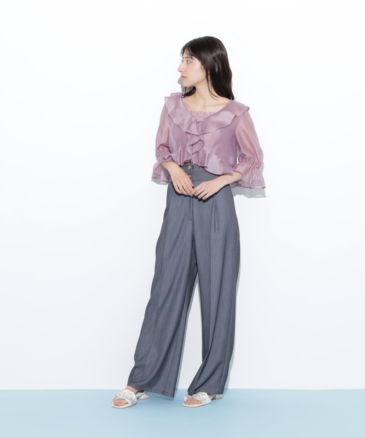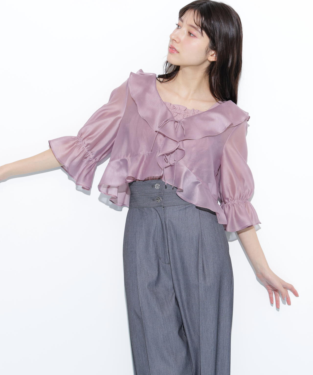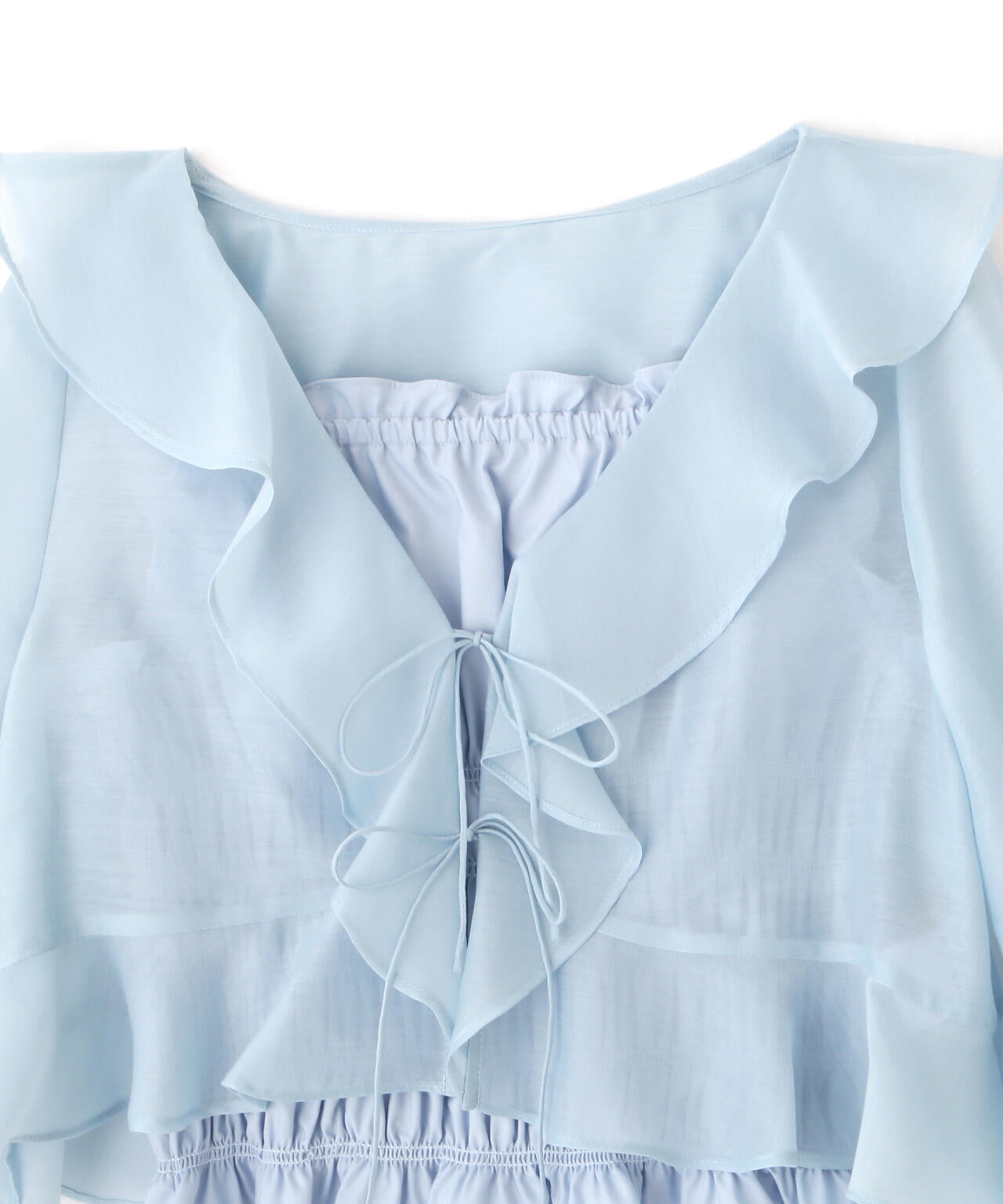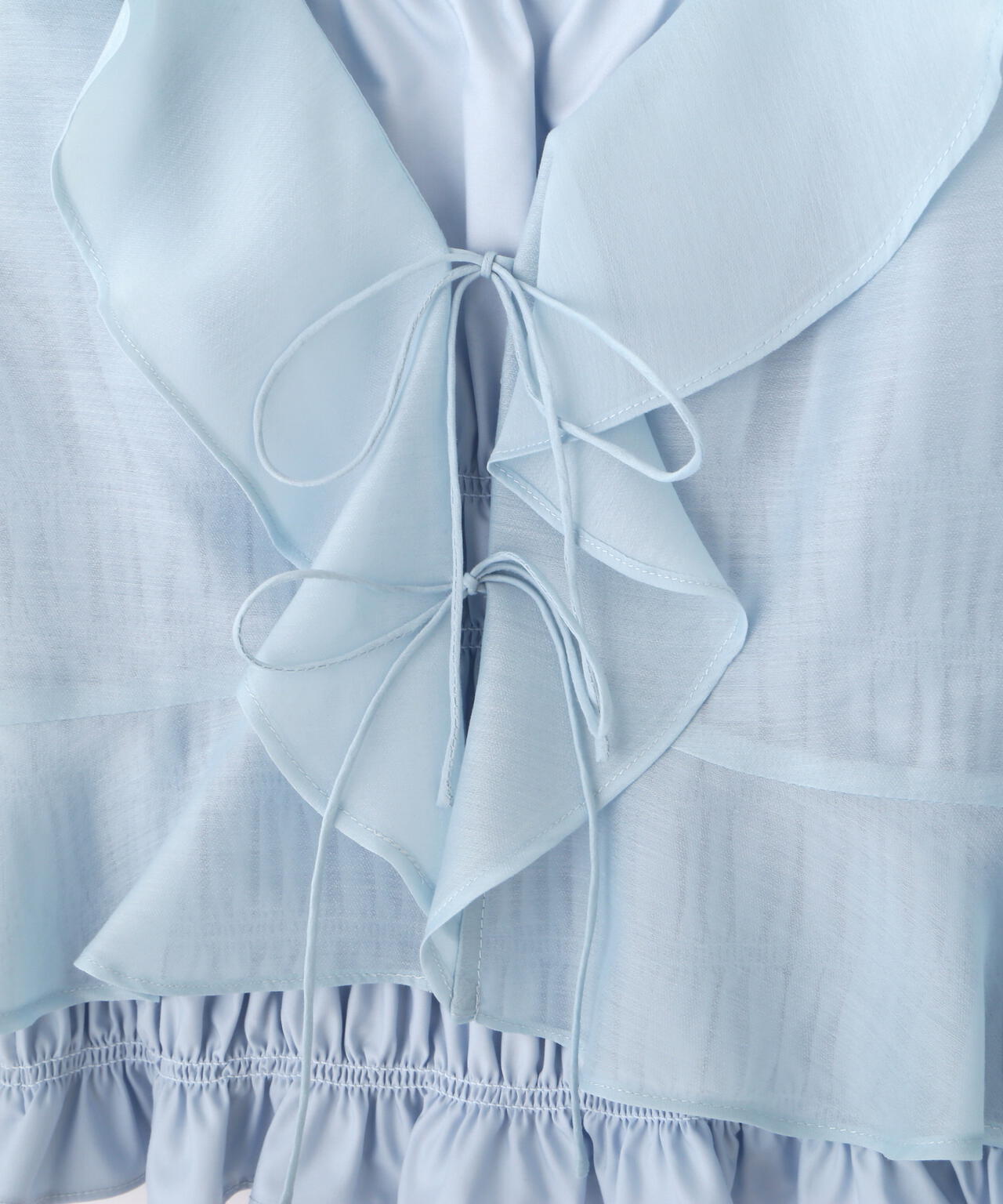 それぞれ単品使いもできる着回し力の高さとトレンド感を両取りしたアンサンブル。シアー素材のラッフルボレロは、軽やかな透け感とボリューミーなフリルがポイント。動くたびに揺れるディテールがフェミニンで華やかです。インナーキャミソールはシャーリングを効かせてレディライクな印象に。ボトムス次第で甘いスタイルから、カジュアルMIXコーデまで幅広く楽しめます。※撮影時照明の関係により、色味が違って見える場合がございます。