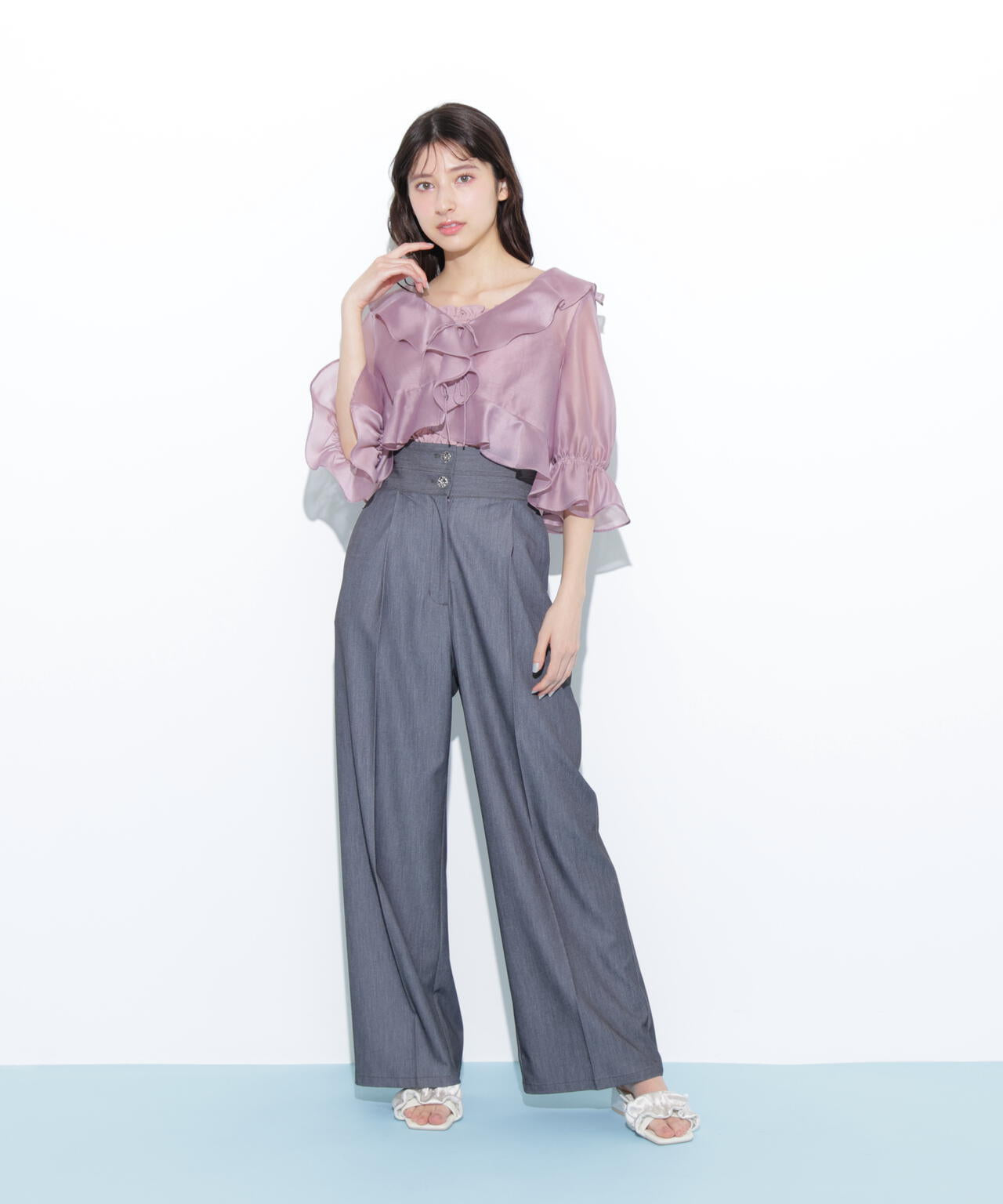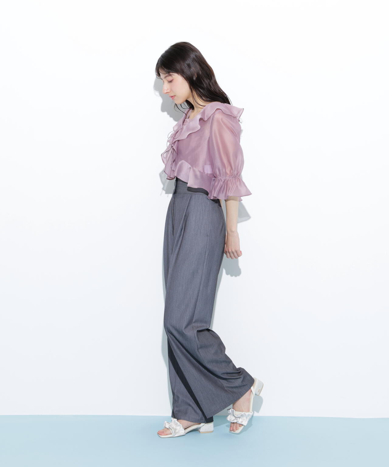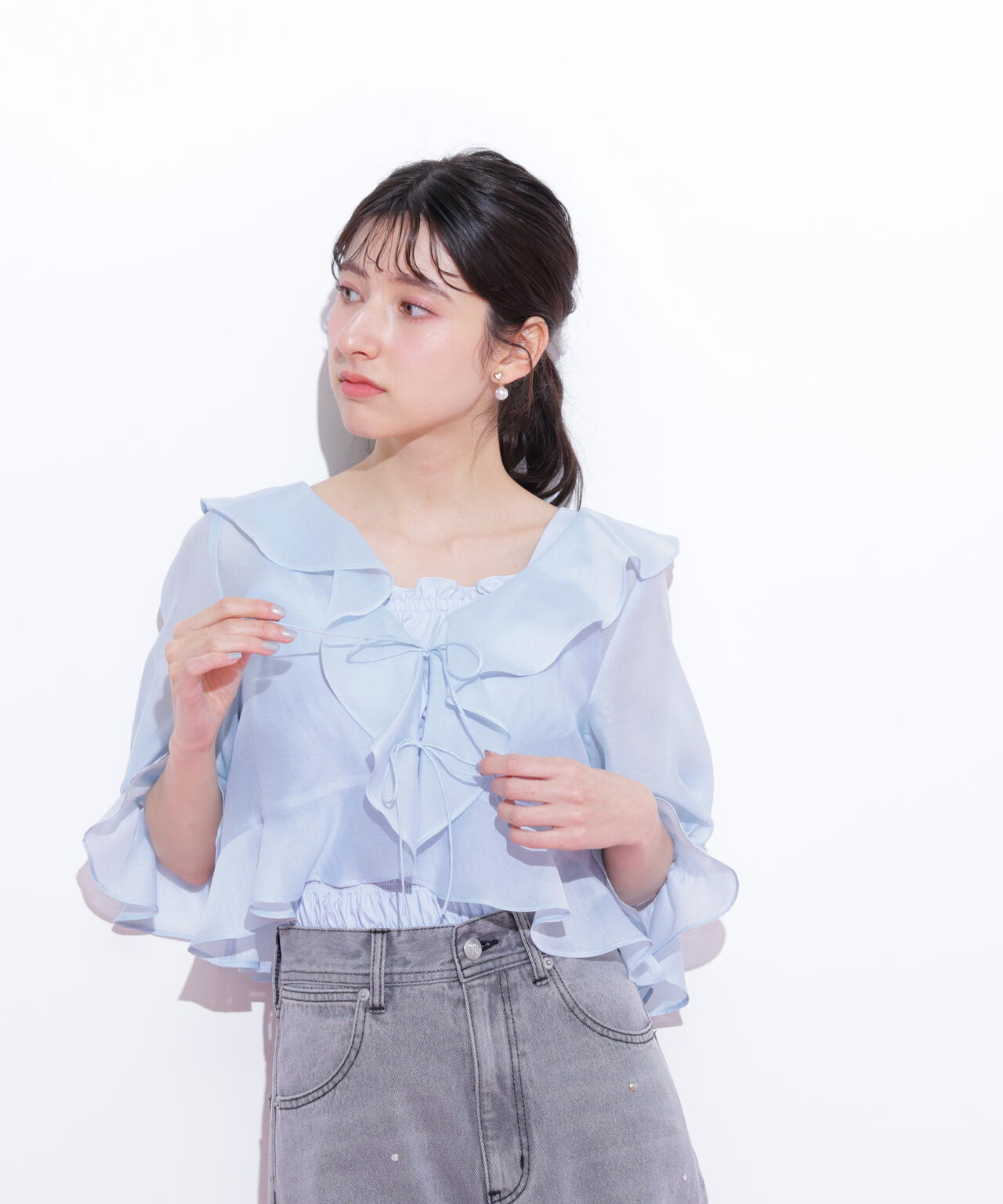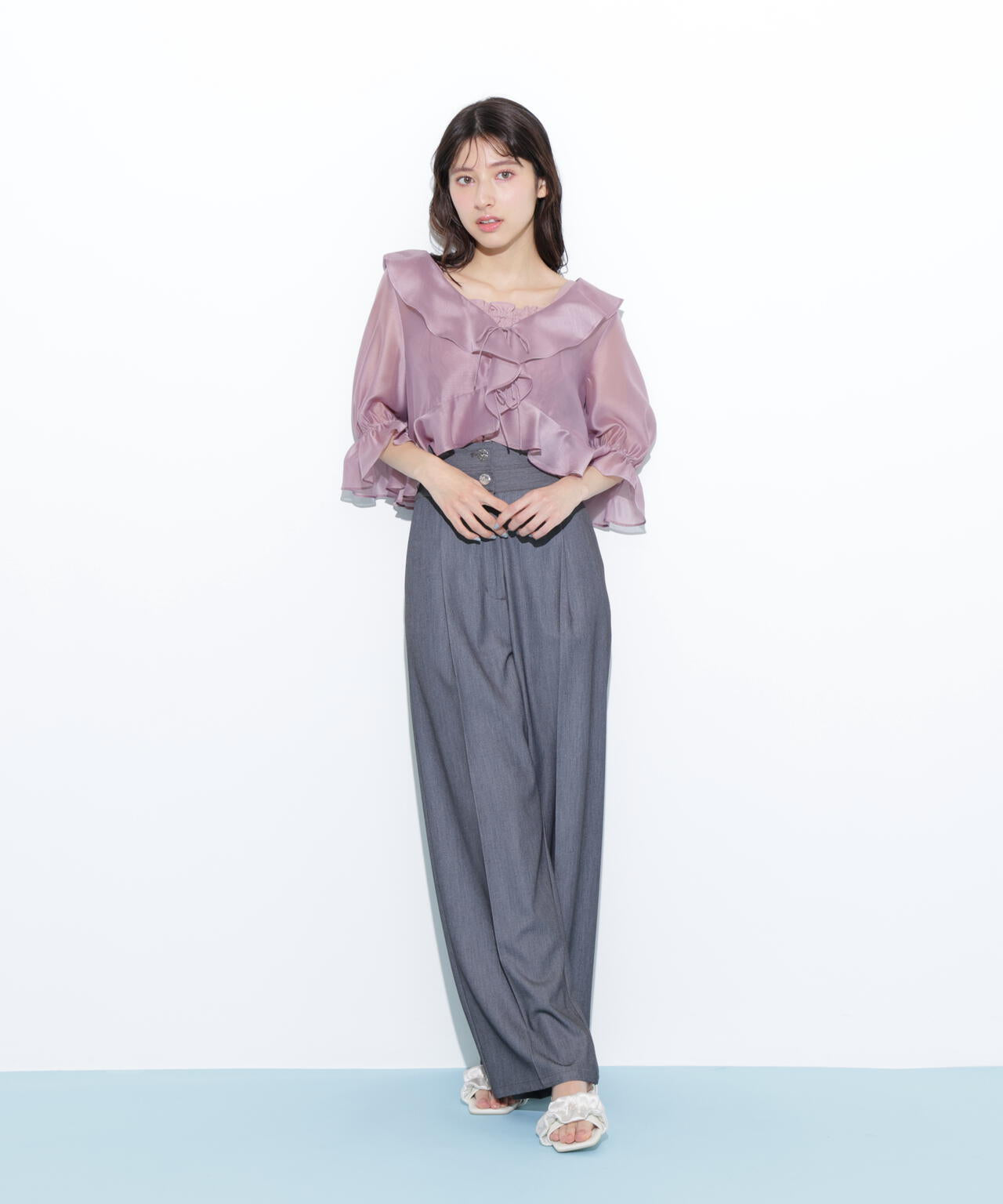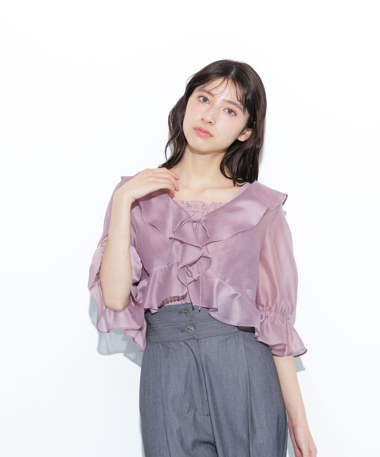 それぞれ単品使いもできる着回し力の高さとトレンド感を両取りしたアンサンブル。シアー素材のラッフルボレロは、軽やかな透け感とボリューミーなフリルがポイント。動くたびに揺れるディテールがフェミニンで華やかです。インナーキャミソールはシャーリングを効かせてレディライクな印象に。ボトムス次第で甘いスタイルから、カジュアルMIXコーデまで幅広く楽しめます。※撮影時照明の関係により、色味が違って見える場合がございます。