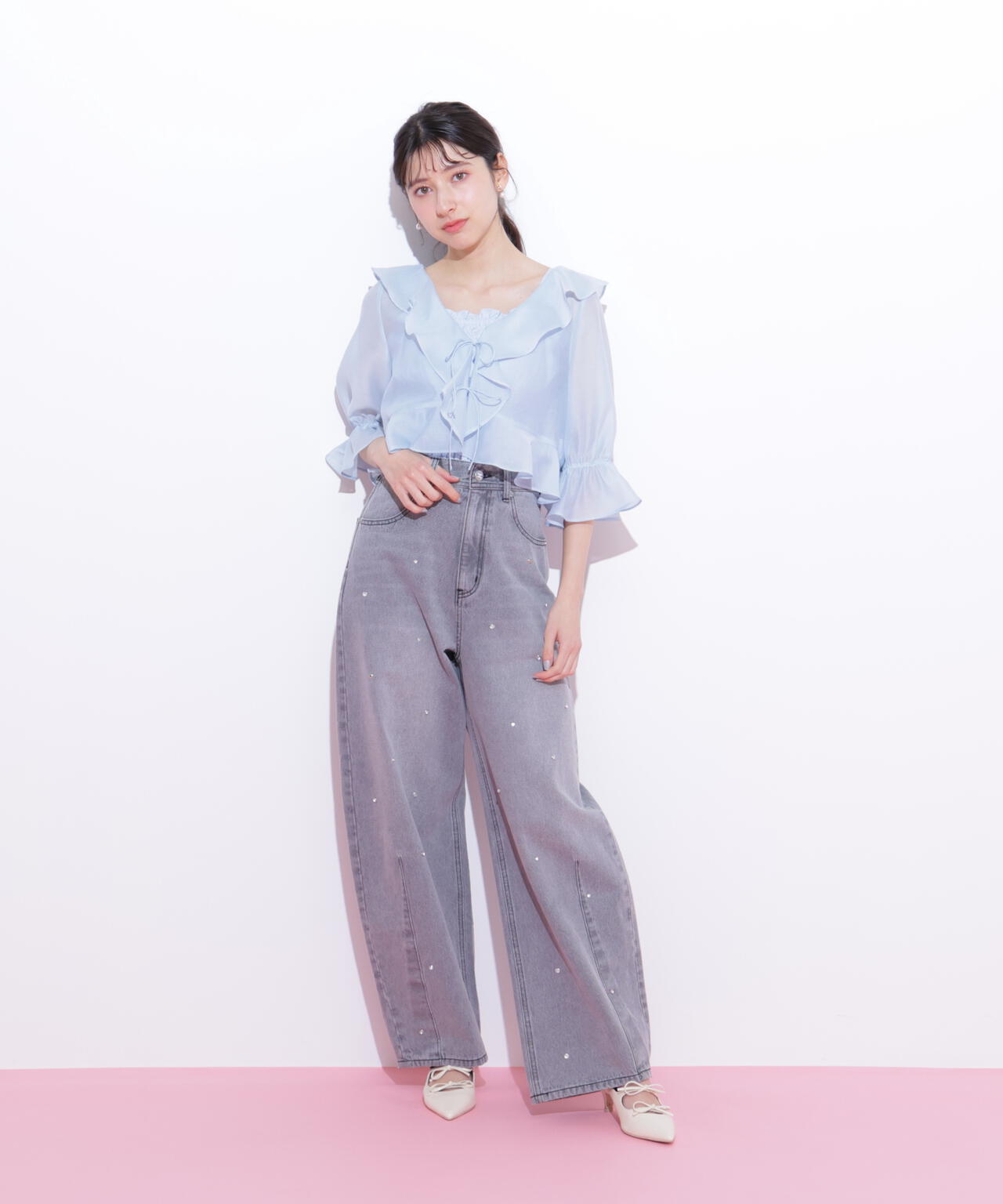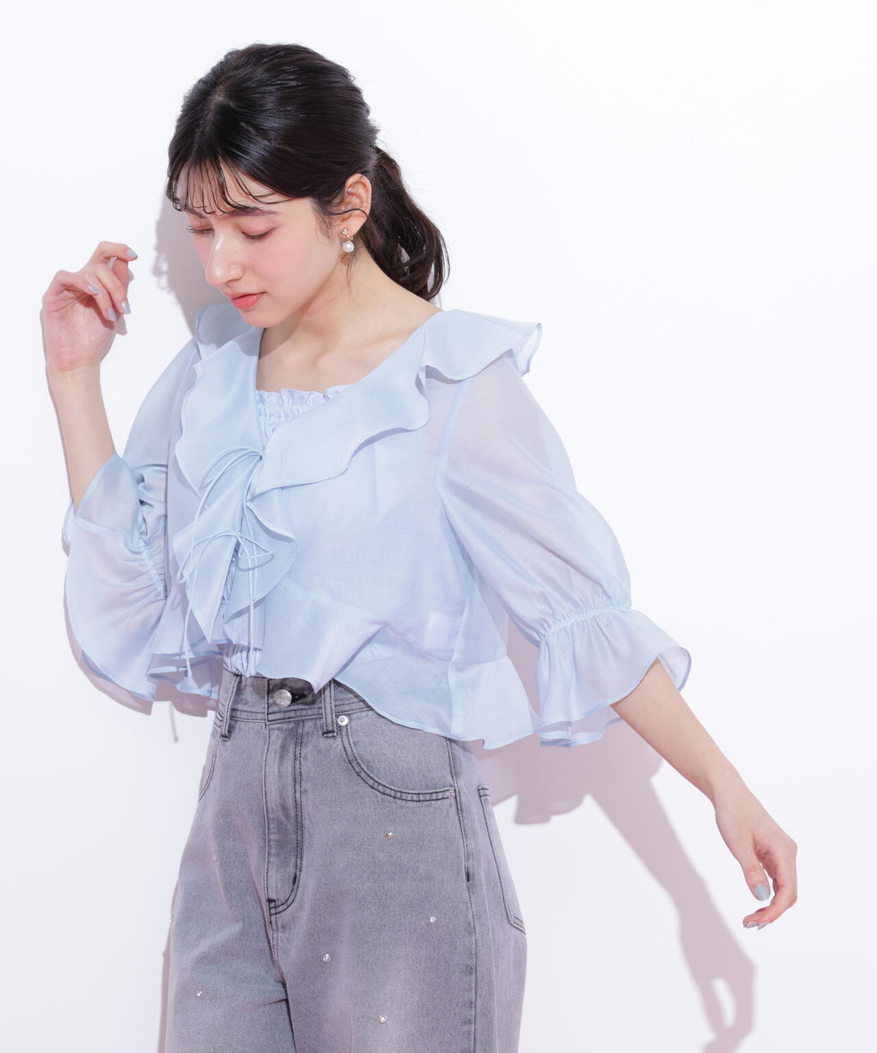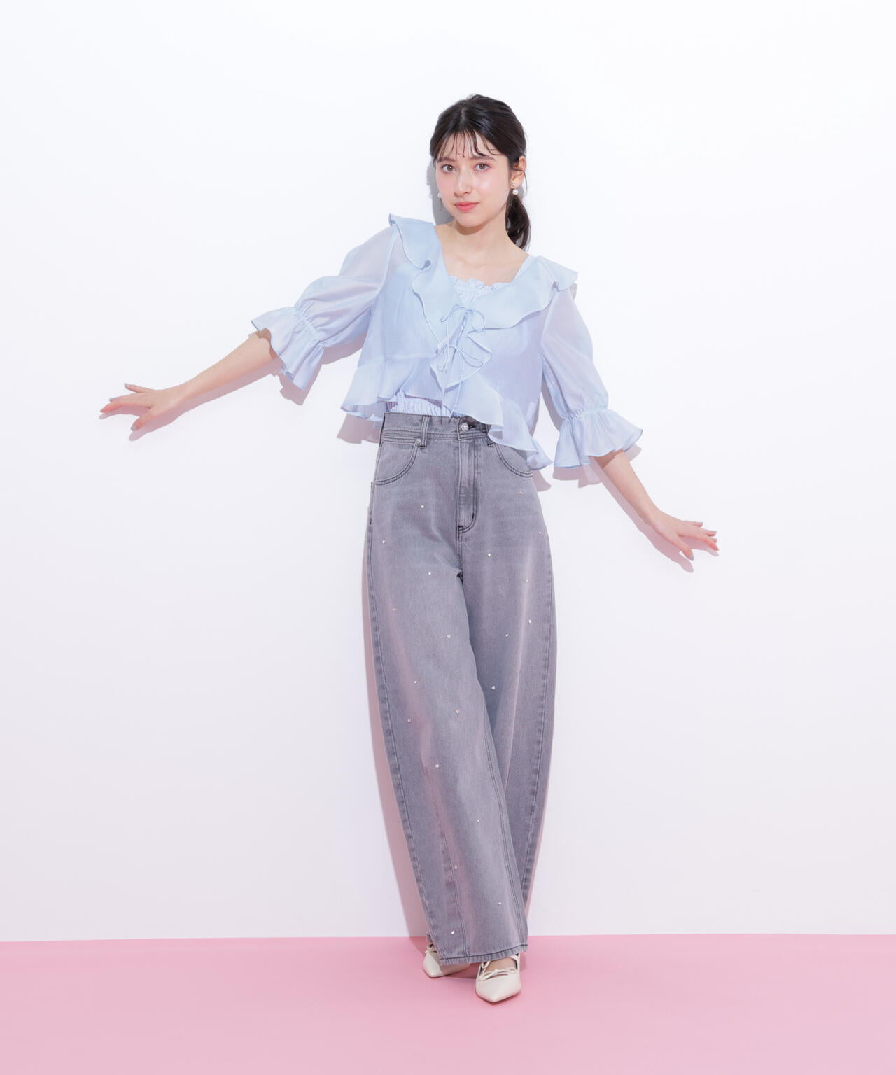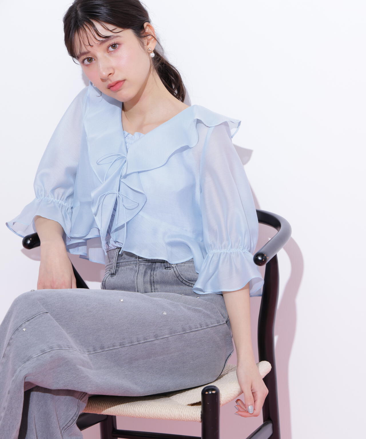 それぞれ単品使いもできる着回し力の高さとトレンド感を両取りしたアンサンブル。シアー素材のラッフルボレロは、軽やかな透け感とボリューミーなフリルがポイント。動くたびに揺れるディテールがフェミニンで華やかです。インナーキャミソールはシャーリングを効かせてレディライクな印象に。ボトムス次第で甘いスタイルから、カジュアルMIXコーデまで幅広く楽しめます。※撮影時照明の関係により、色味が違って見える場合がございます。
