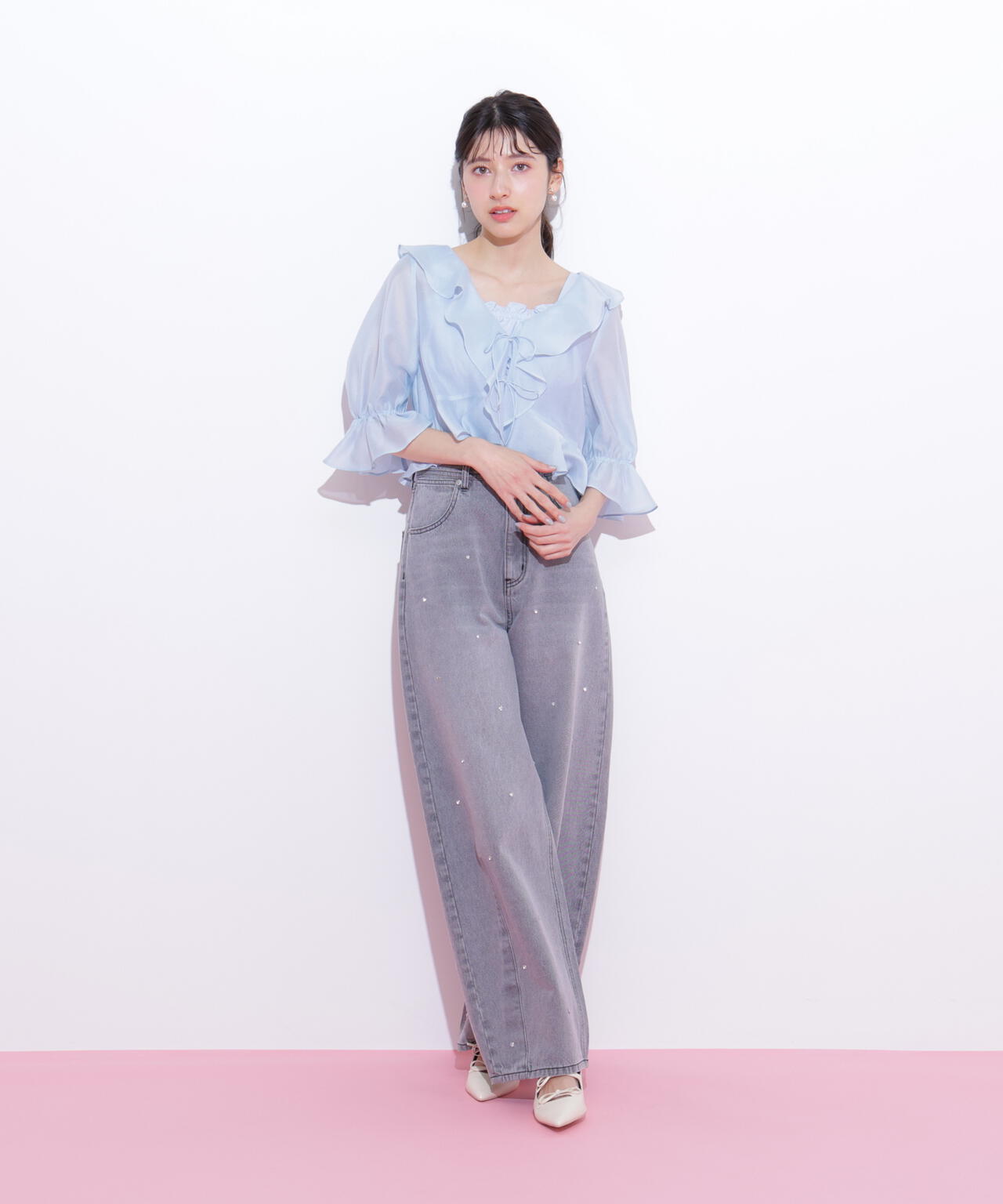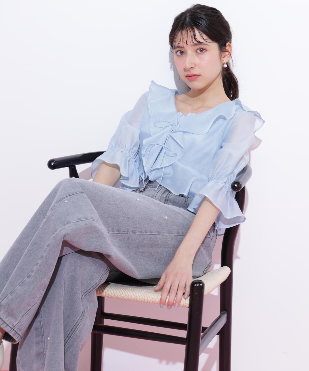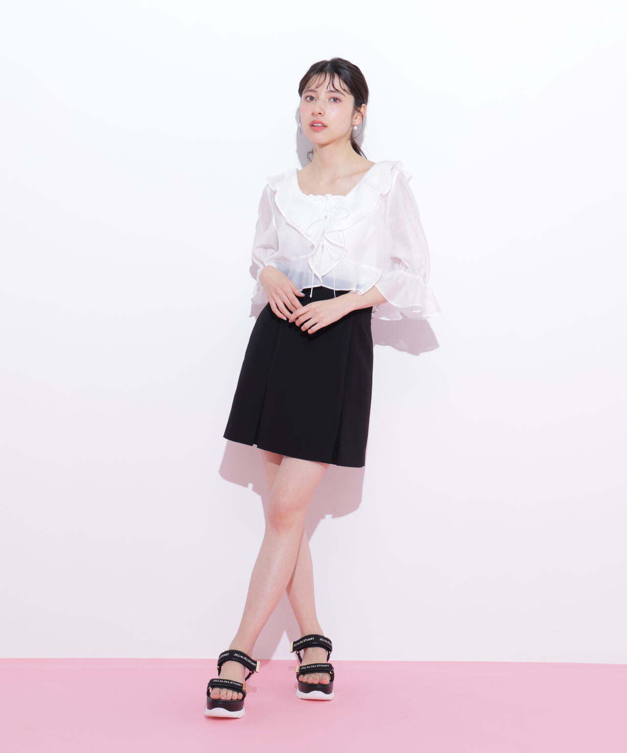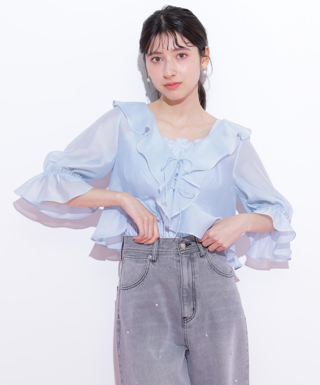 それぞれ単品使いもできる着回し力の高さとトレンド感を両取りしたアンサンブル。シアー素材のラッフルボレロは、軽やかな透け感とボリューミーなフリルがポイント。動くたびに揺れるディテールがフェミニンで華やかです。インナーキャミソールはシャーリングを効かせてレディライクな印象に。ボトムス次第で甘いスタイルから、カジュアルMIXコーデまで幅広く楽しめます。※撮影時照明の関係により、色味が違って見える場合がございます。
