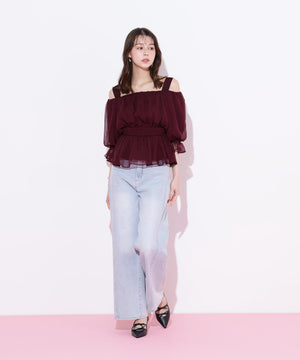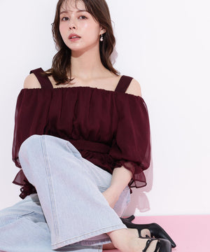楊柳オフショルパフブラウス