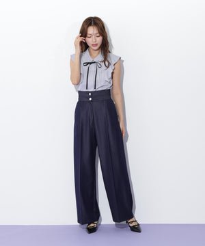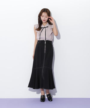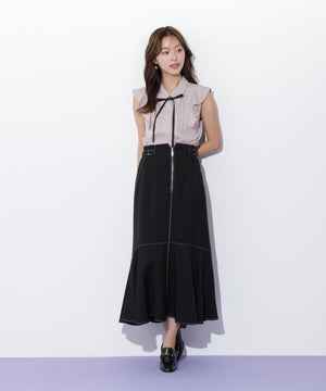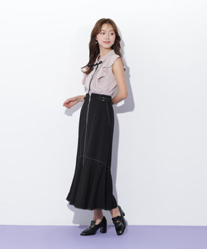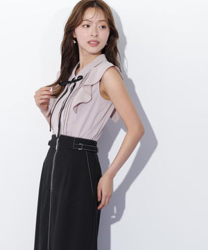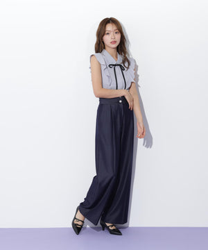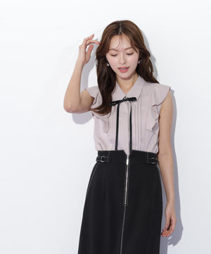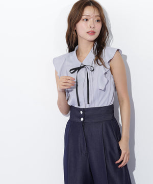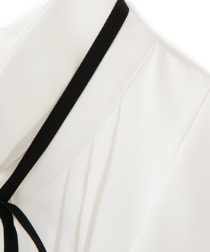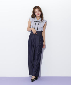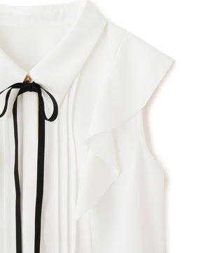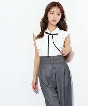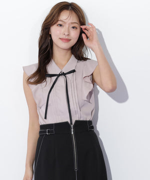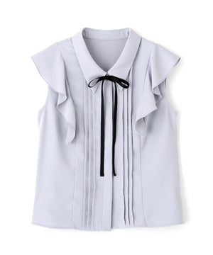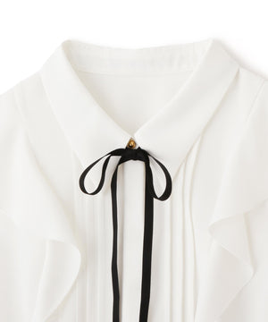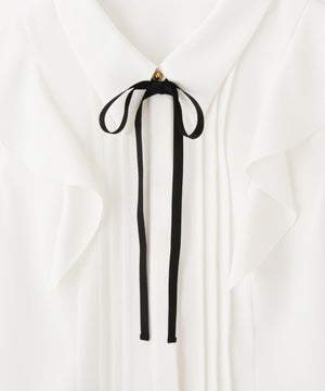 エレガントでフェミニンな雰囲気のサテンリボン付きピンタックブラウス。ピンタックが施されたデザインは繊細で上品な印象に見せてくれます。襟元にあしらわれたリボンや肩先がそっと隠れるフリルディテールで愛らしさをプラス。お仕事やちょっとした会食など、様々なシーンで着用いただけます。※撮影時照明の関係により、色味が違って見える場合がございます。