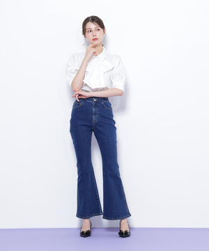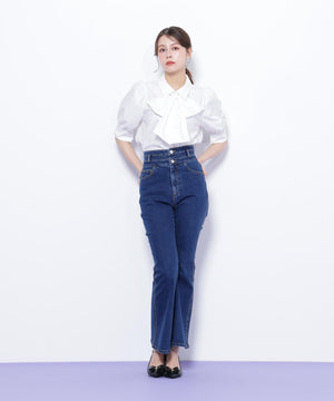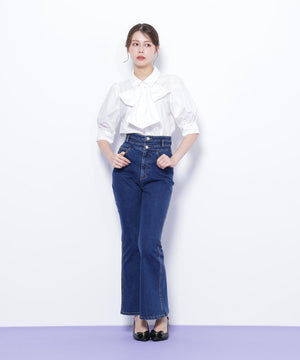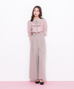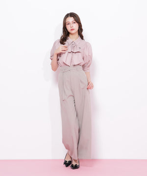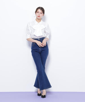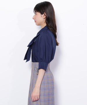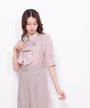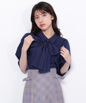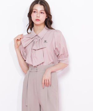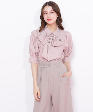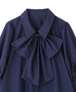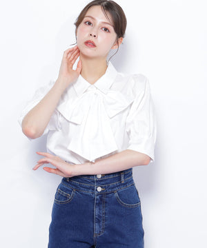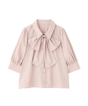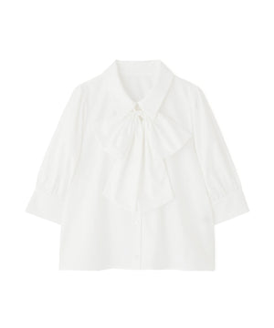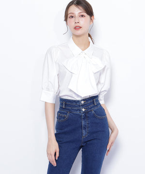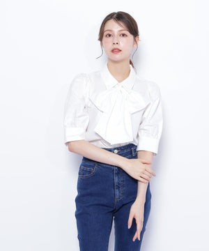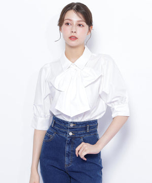 顔まわりを華やかに彩る、大ぶりリボンが主役のボウタイブラウス。ボリュームのあるリボンが、スタイリングにエレガントなアクセントを加えます。リボンタイは取り外し可能。ジャケットやジャンスカのインナーとしても映えるデザインで、フォーマルにもデイリーにも着回せます。※撮影時照明の関係により、色味が違って見える場合がございます。
