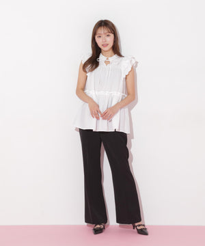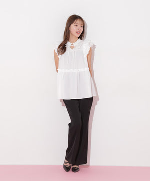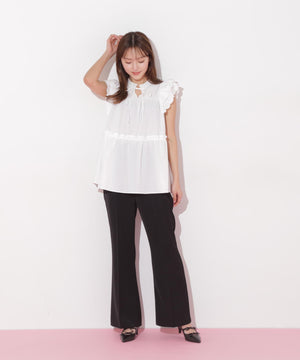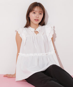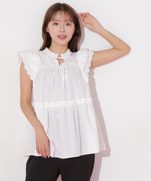 今年トレンドのチュニック丈ブラウス。コットンタッチで肌触りがよく、ほどよくカジュアルな仕上がりです。袖にオリジナルのカットワーク刺しゅうを入れたスカラップ柄が映えるデザイン。ティアードデザインでトレンド感がUP。ボトムスはデニムパンツやセミフレアパンツを合わせると、今年らしいコーディネートが完成します。※撮影時照明の関係により、色味が違って見える場合がございます。