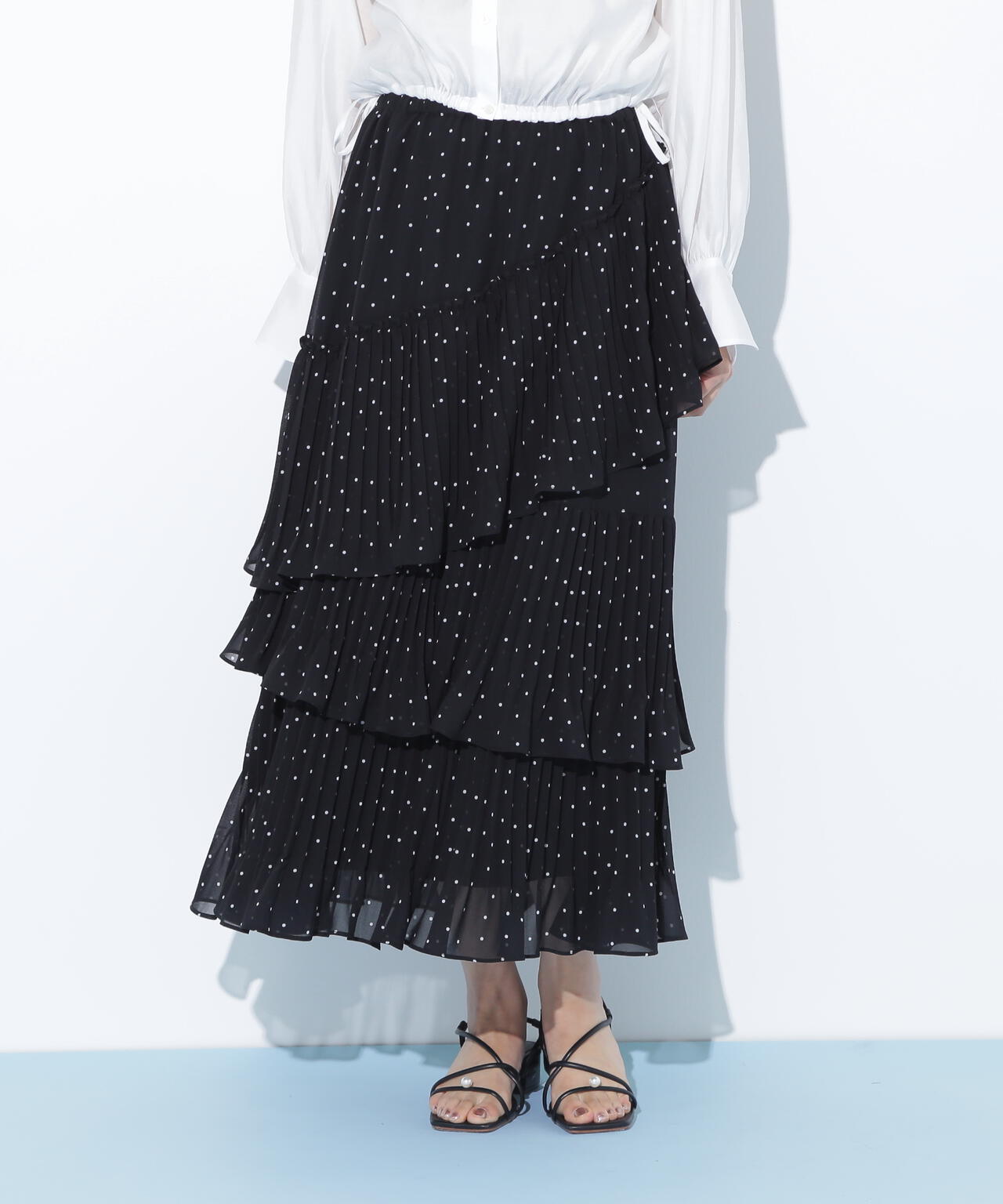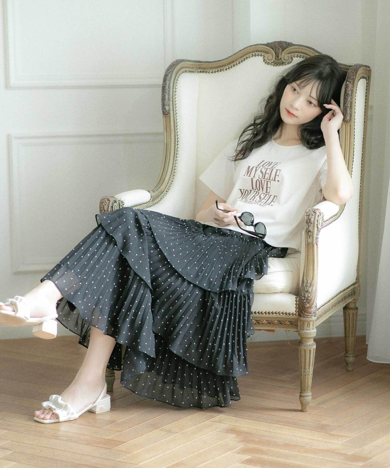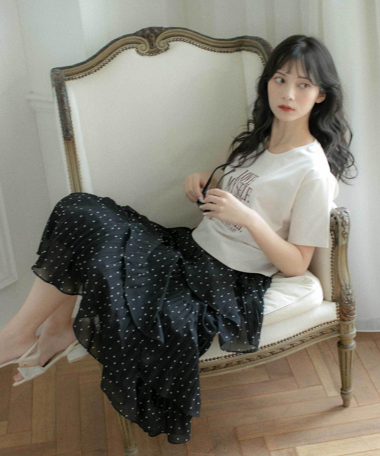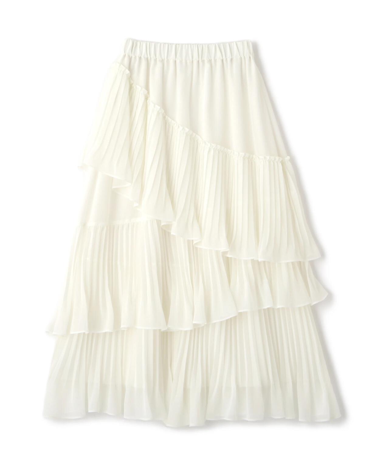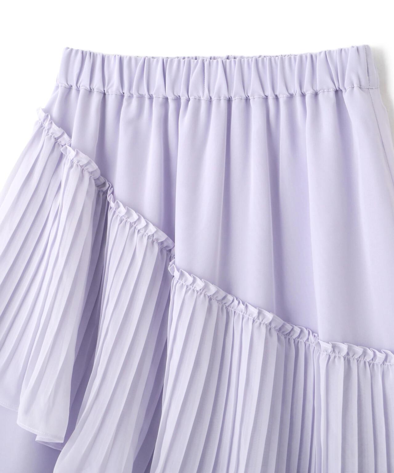 シアー素材が軽やかに揺れるアシンメトリーデザインのランダムプリーツスカート。動きのあるランダムプリーツが表情豊かで、シンプルながらも存在感のあるデザインです。ホワイトとラベンダーは無地、黒はドット柄が程よくクラシカルな雰囲気を演出し、オトナ可愛い印象に。ウエストはゴム仕様でラクなはき心地です。ブラウスやTシャツ、ニットなど様々なトップスと相性がよく、カジュアルからフェミニンまで幅広いスタイリングが楽しめます。※撮影時照明の関係により、色味が違って見える場合がございます。