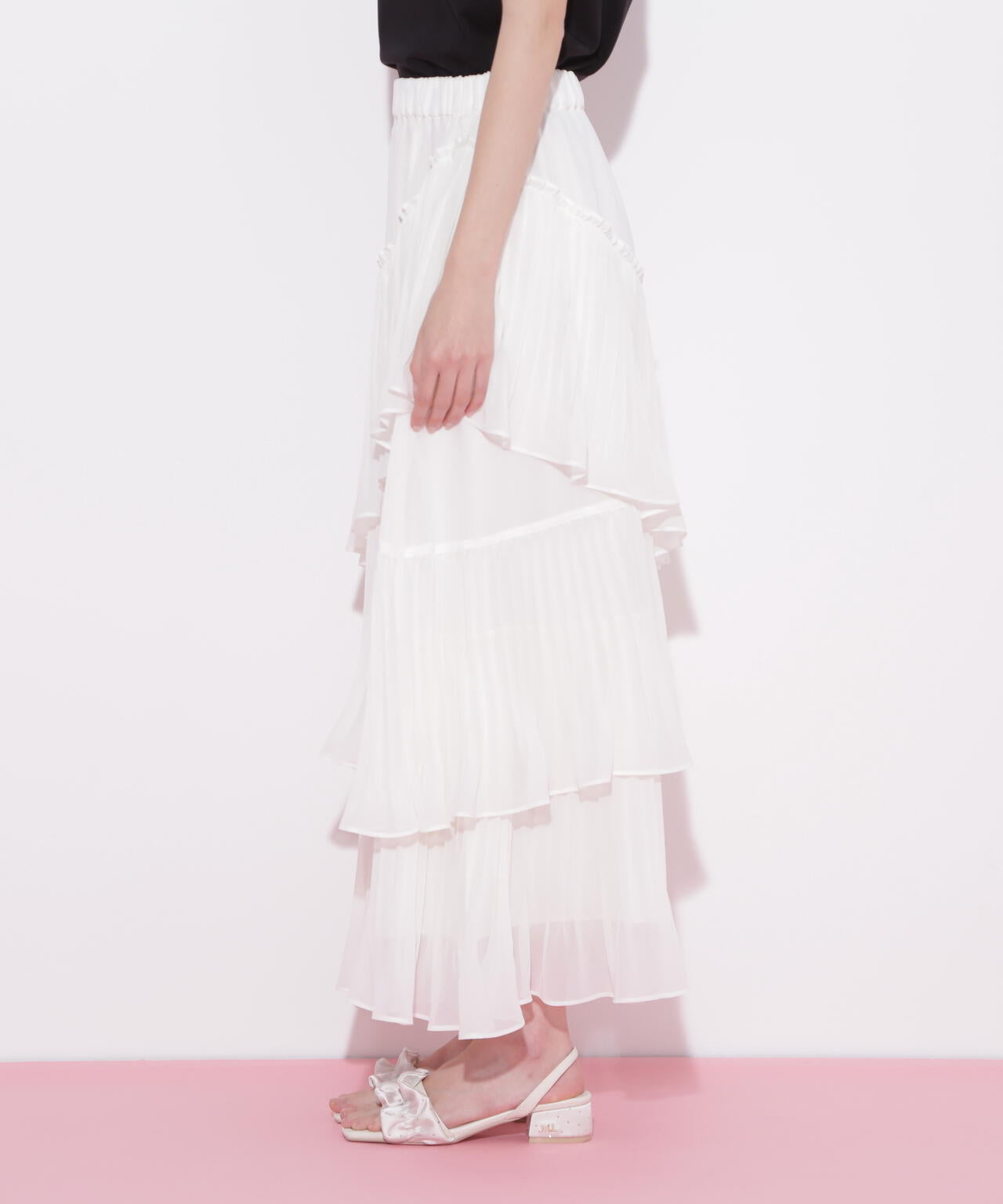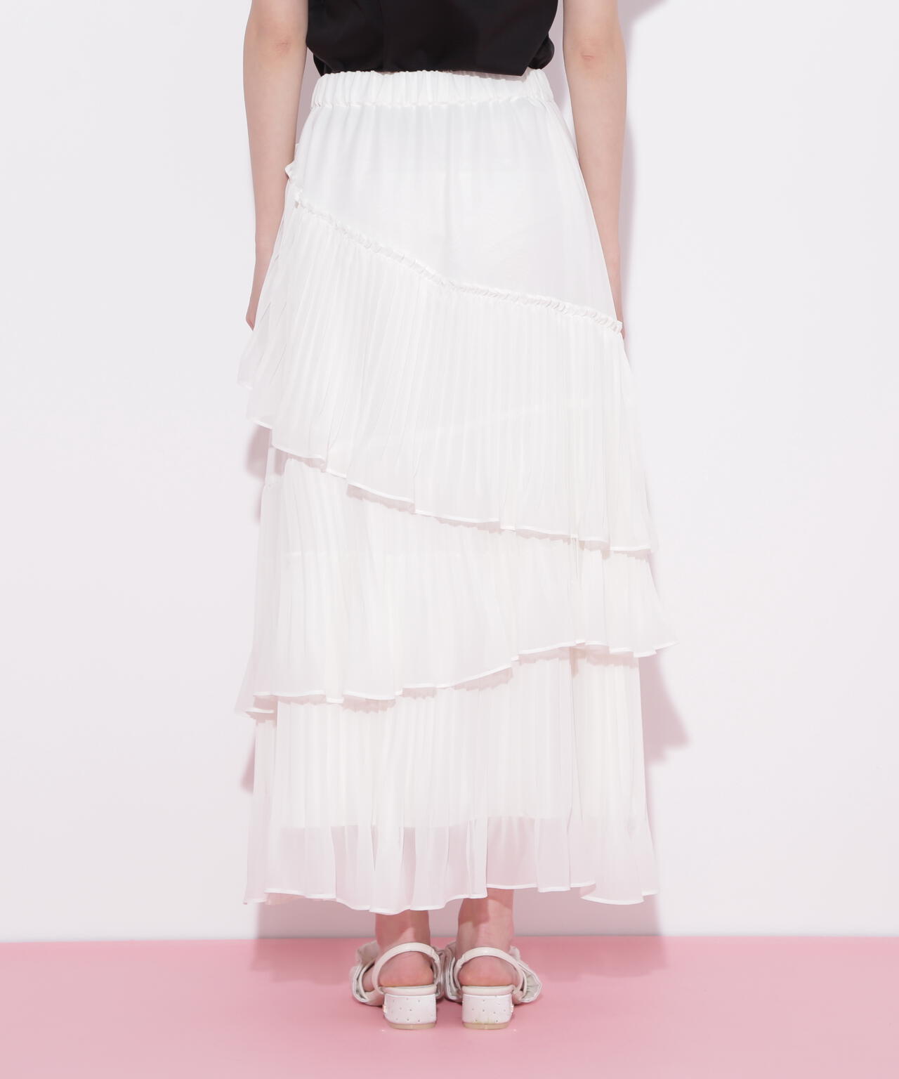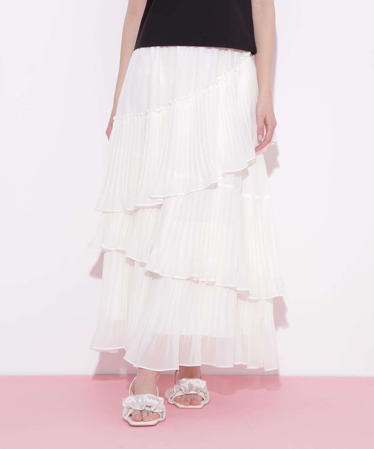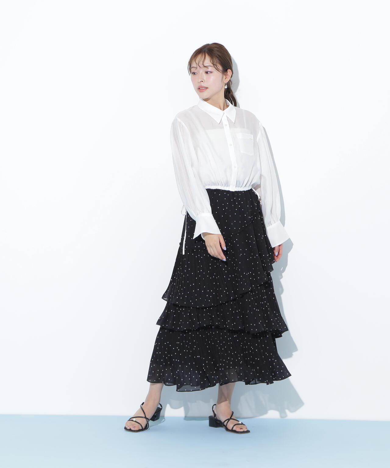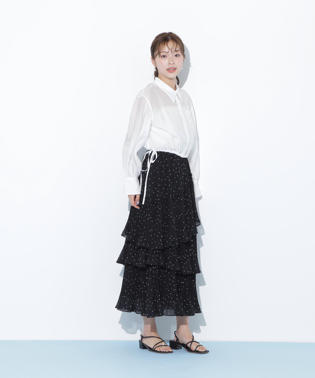 シアー素材が軽やかに揺れるアシンメトリーデザインのランダムプリーツスカート。動きのあるランダムプリーツが表情豊かで、シンプルながらも存在感のあるデザインです。ホワイトとラベンダーは無地、黒はドット柄が程よくクラシカルな雰囲気を演出し、オトナ可愛い印象に。ウエストはゴム仕様でラクなはき心地です。ブラウスやTシャツ、ニットなど様々なトップスと相性がよく、カジュアルからフェミニンまで幅広いスタイリングが楽しめます。※撮影時照明の関係により、色味が違って見える場合がございます。