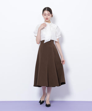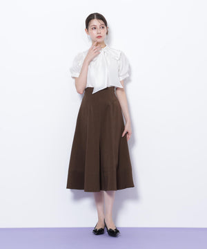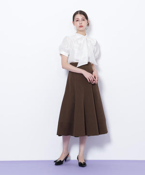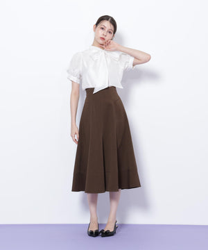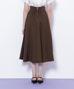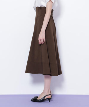 膨らみとハリのあるドライタッチでさらっとした素材を使用したフレアスカート。腰まわりはすっきりと、裾はボリュームのあるフレアシルエットを演出します。シンプルなデザインながら、ステッチとシルエットが引き立つ1枚。トップスを選ばず、ONにもOFFスタイルにも着用できます。※撮影時照明の関係により、色味が違って見える場合がございます。