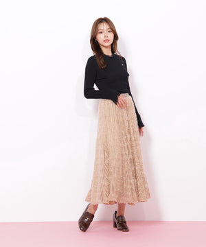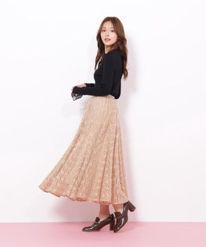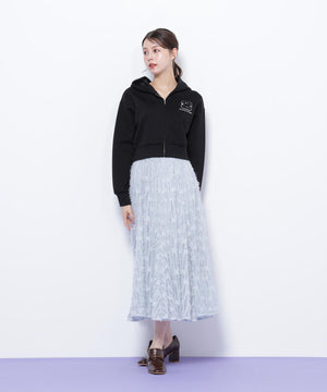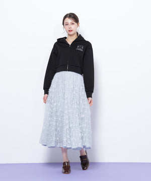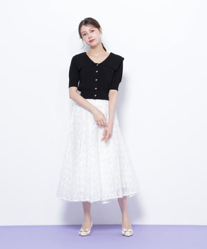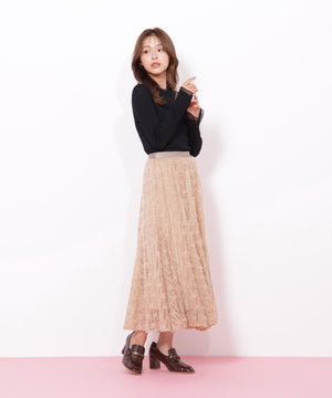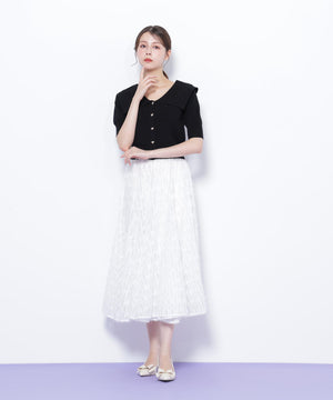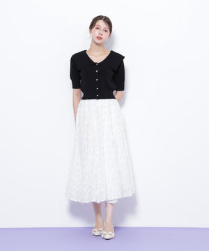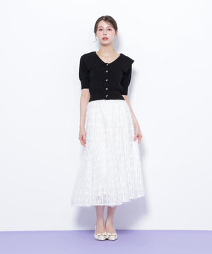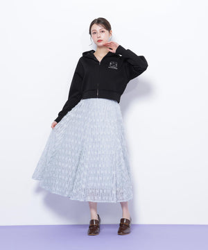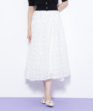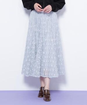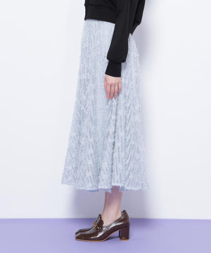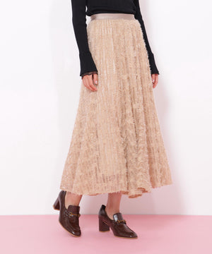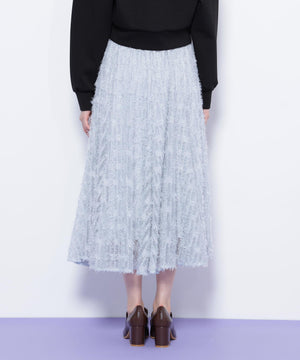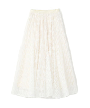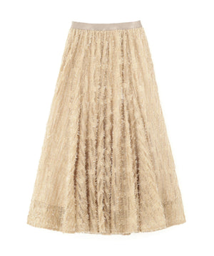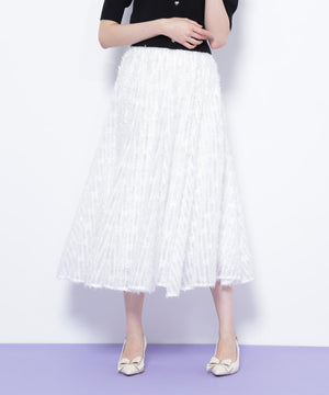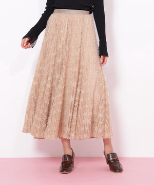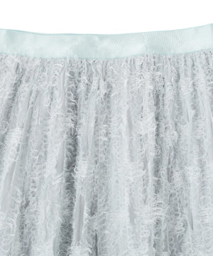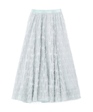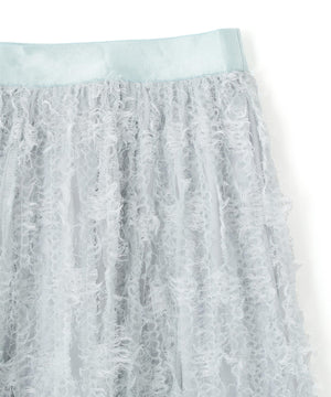 フェザーのような立体感のあるチュールがコーディネートに華を添える軽やかなスカート。透け感のあるチュール生地をベースにし、ふさふさとフェザーのような表情が特徴です。トレンド感のある素材でほんのりと秋を感じるスタイルが完成します。ウエストはぐるりゴム仕様で締め付け感なく快適にフィット。ウエストまわりはすっきりと、裾は分量をとったドラマチックなシルエットがポイントです。※撮影時照明の関係により、色味が違って見える場合がございます。