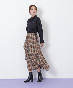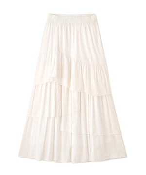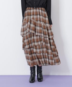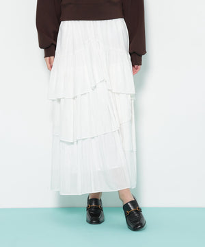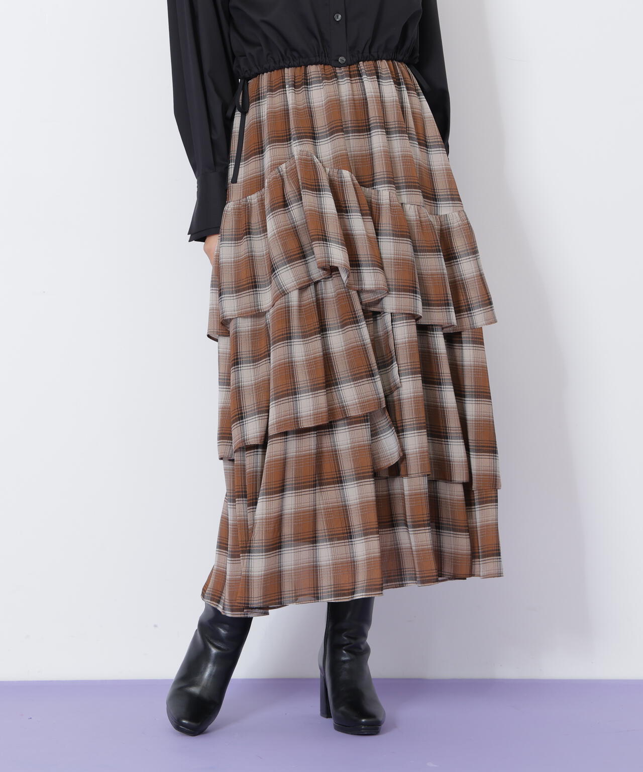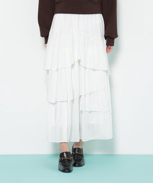 ランダムな段差が可愛いアシンメトリーのティアードスカート。歩くたびにふんわり揺れるシルエットで、軽やかさと華やかさをプラス。ブラウスやニットを合わせると、トレンド感あるフェミニンコーデが完成します。※撮影時照明の関係により、色味が違って見える場合がございます。