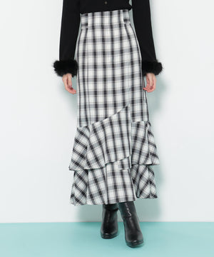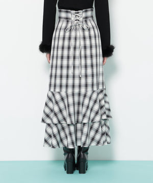 細身のマーメイドシルエットのスカート。ハイウエストデザインのマーメイドシルエットです。後ろはフィット感のあるレースアップで、ウエストインがすっきり決まります。ゆるっとしたニット合わせもおすすめ。秋冬トレンドのビッグチェック柄と、合わせやすい無地の3色展開です。※撮影時照明の関係により、色味が違って見える場合がございます。