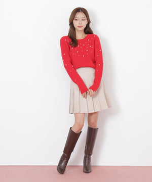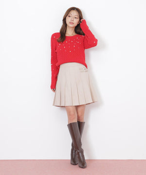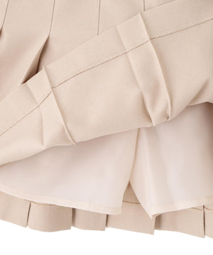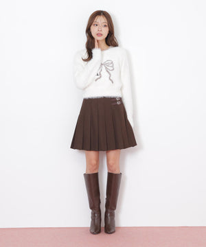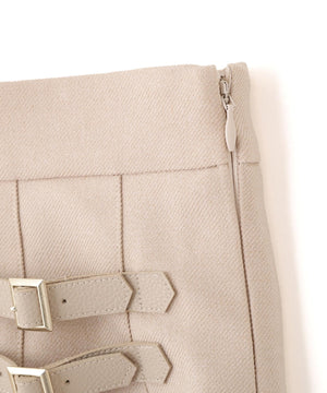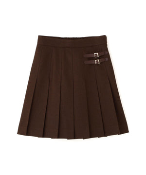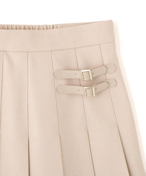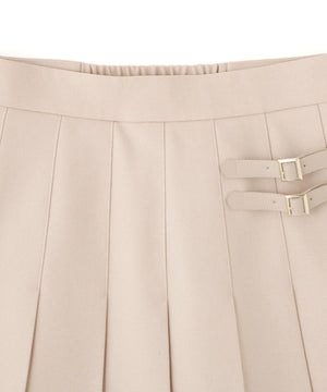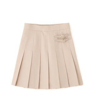 合皮ベルトときらっとバックルが高見えするプリーツミニスカート。腰まわりはすっきりさせ、裾に向かってひらっと広がるシルエットです。ビッグパーカーやニットも合わせやすくなっています。足元はロングブーツ、ソックス×ローファー合わせもおすすめです。※撮影時照明の関係により、色味が違って見える場合がございます。