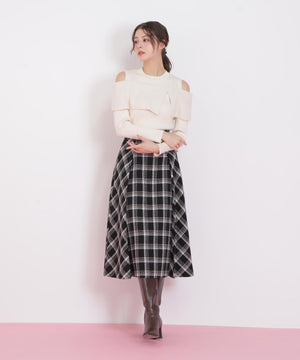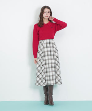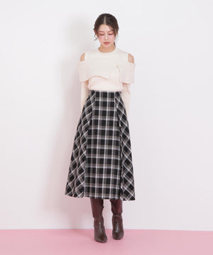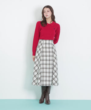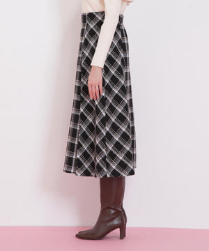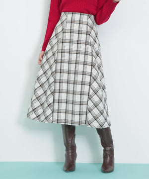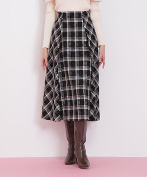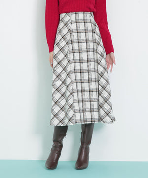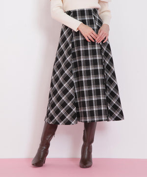 大柄なチェックが冬の装いを華やかに彩るスカート。