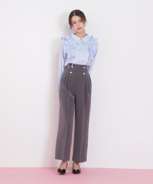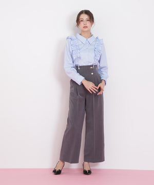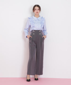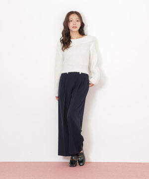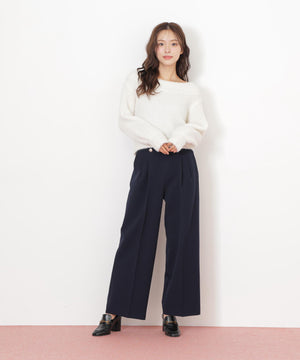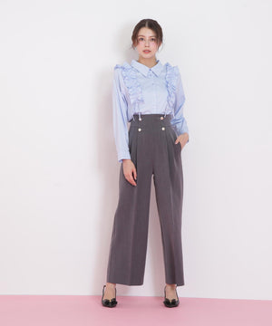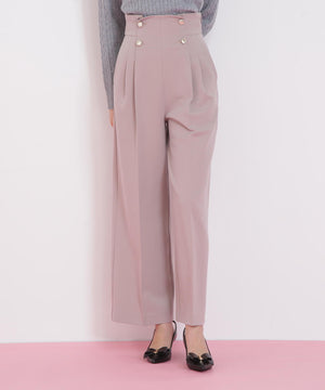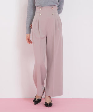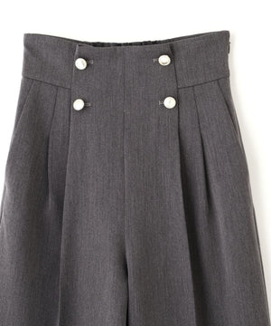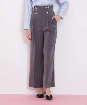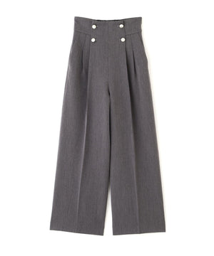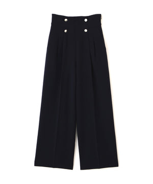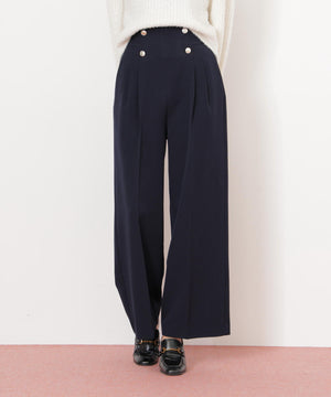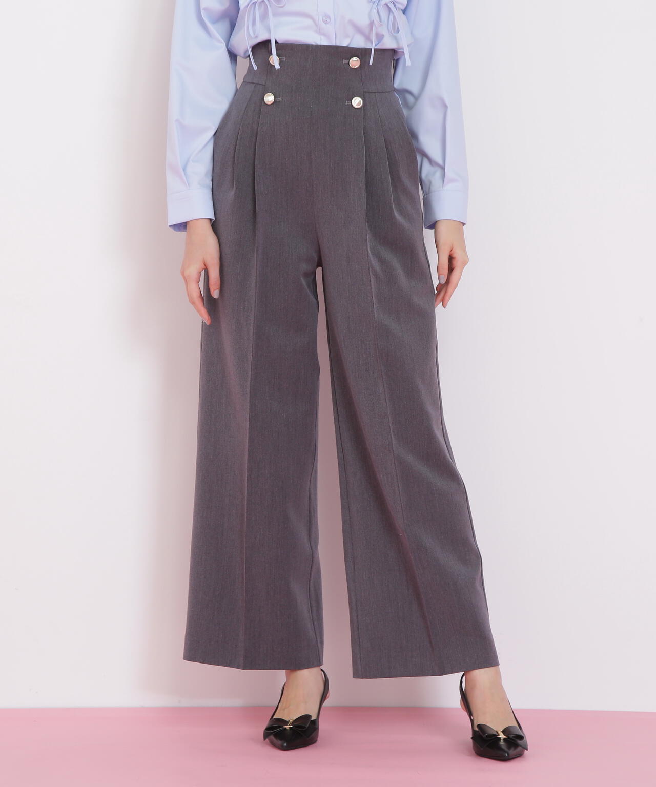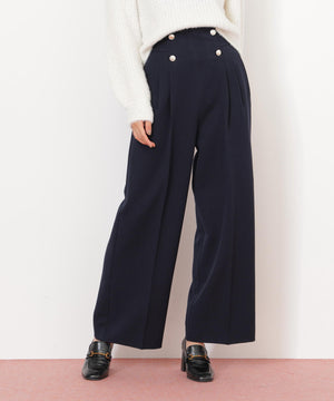 JILL by JILL STUART 定番人気のメタルボタンワイドパンツをアップデート!ウエスト脇の切り替えと脇にタックを1本入れて、よりウエストが細くスタイルアップするシルエットになっています。後ろウエストはゴム仕様でフィット感抜群。ストレッチが効いた梳毛調素材を使用しており、はき心地も良いです。※撮影時照明の関係により、色味が違って見える場合がございます。