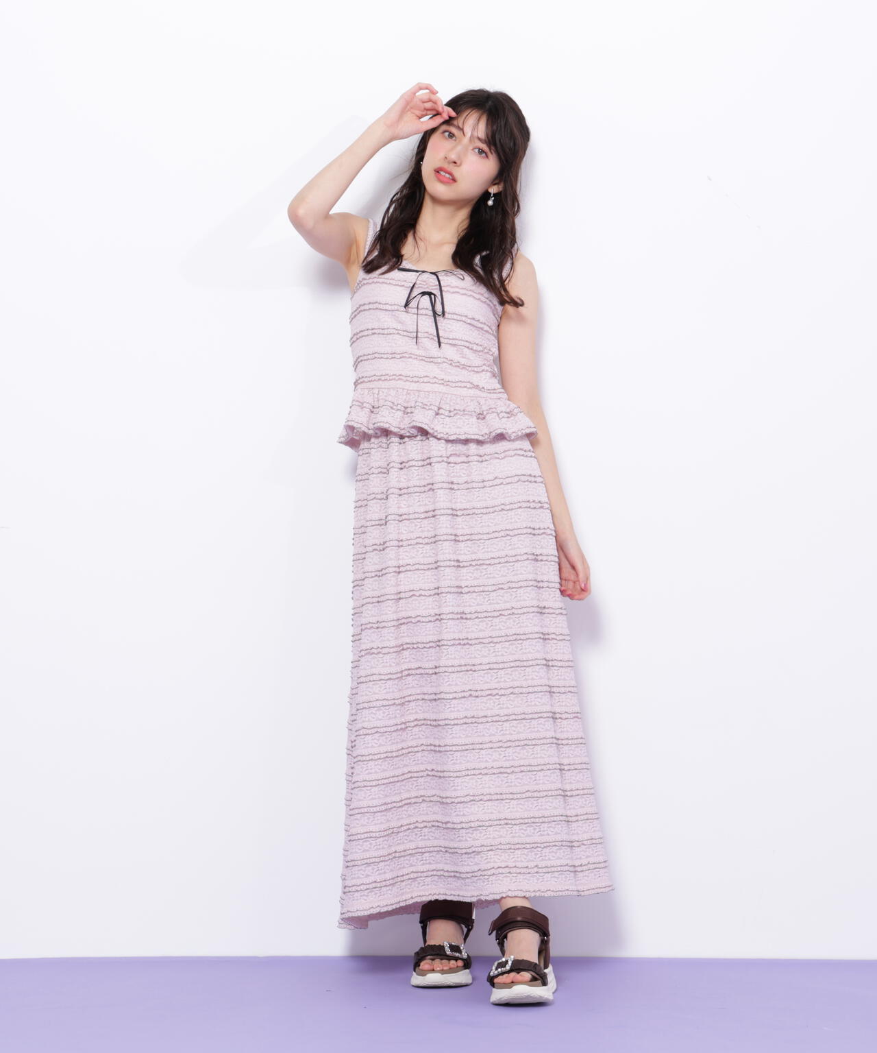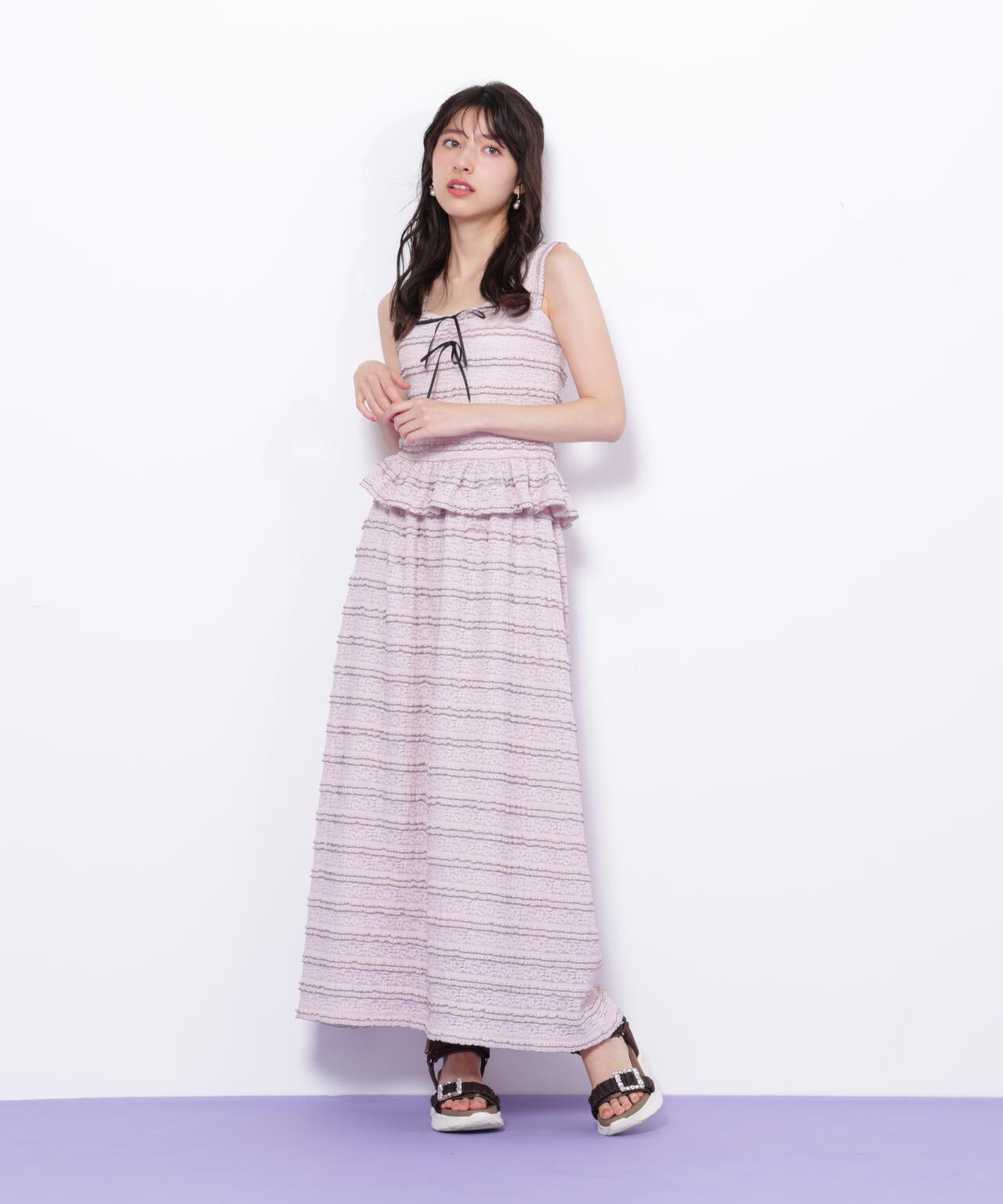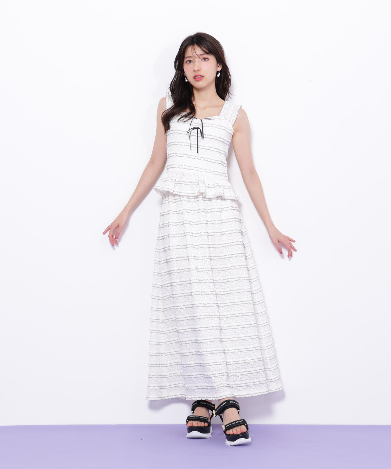 | サイズ | 身幅 | ウエストゴム入り(トップス) | 総丈(トップス) | 総丈(スカート) | ベルト幅(スカート) | ウエストゴム入り(スカート) |