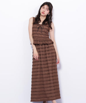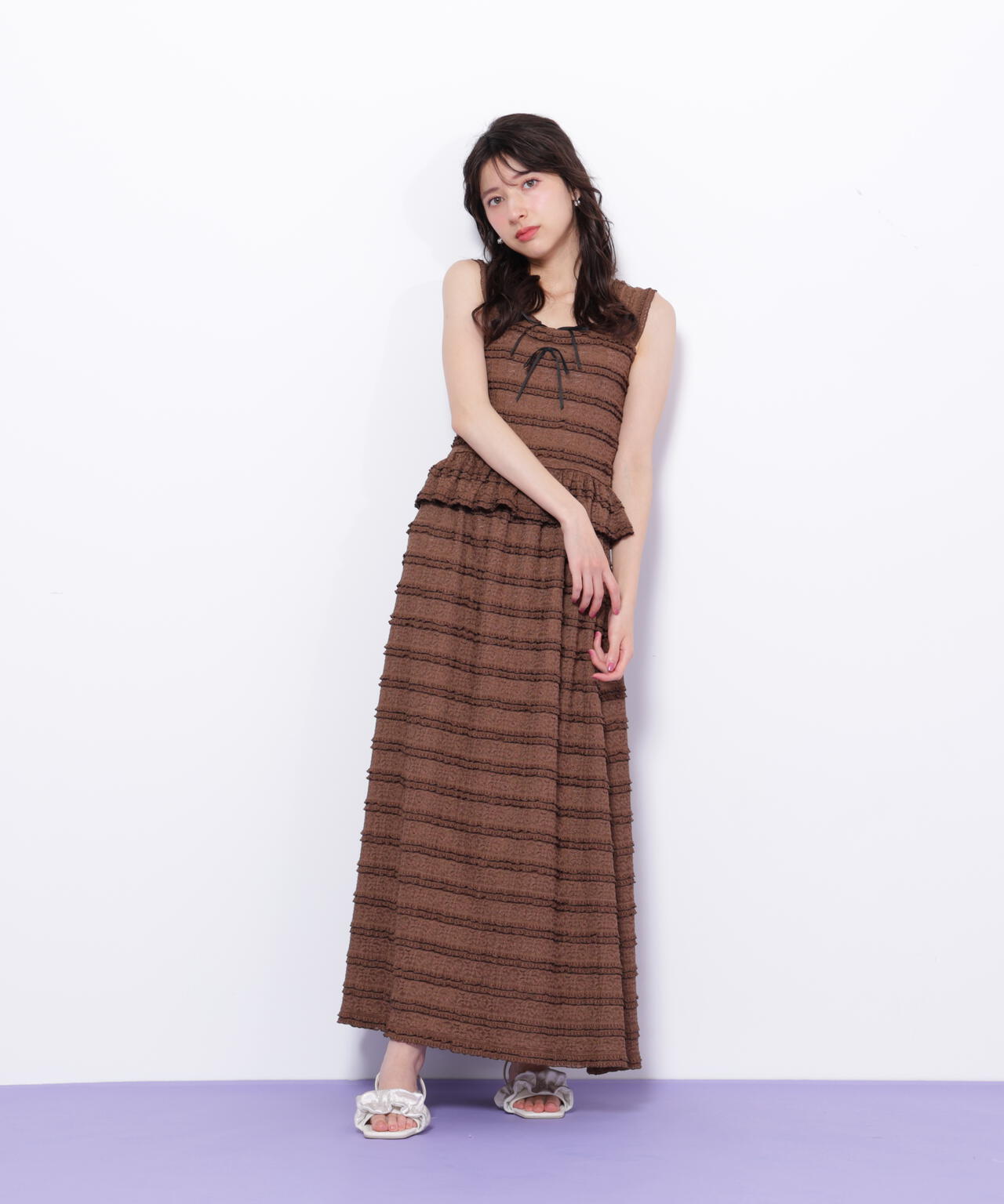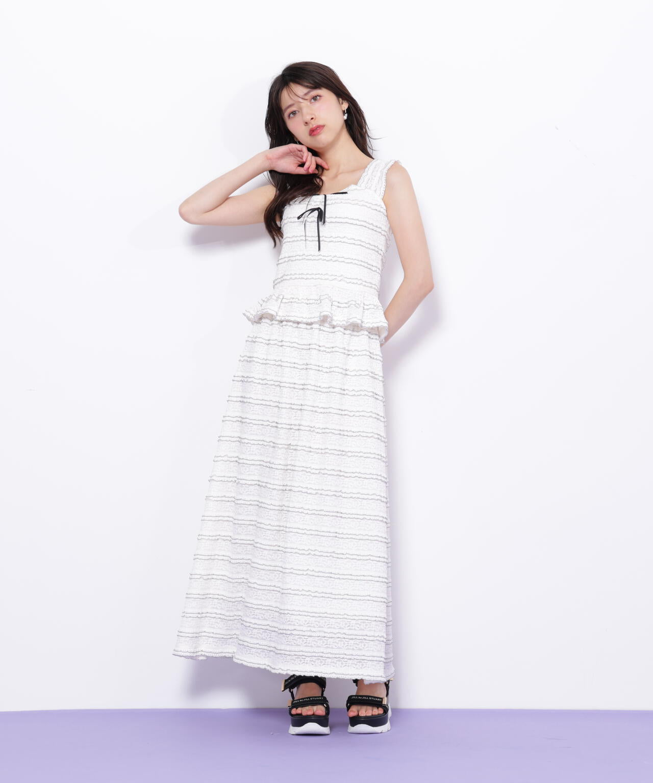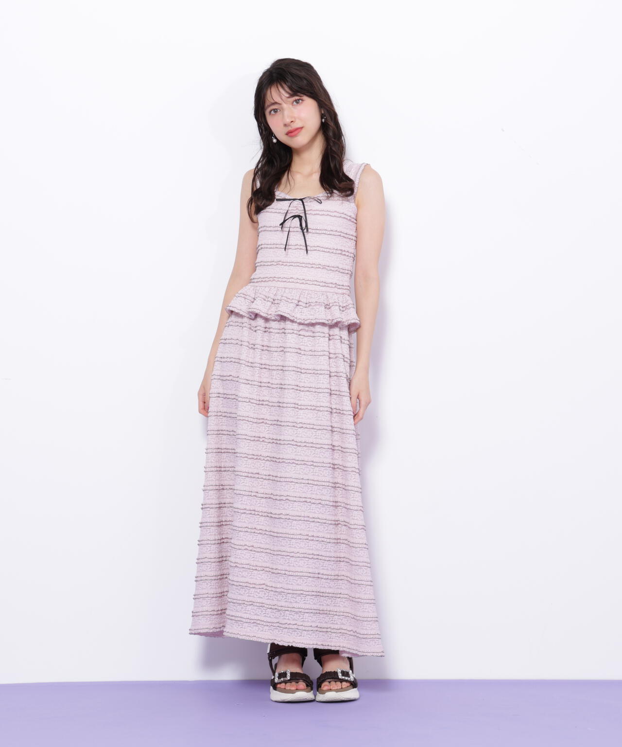 | サイズ | 身幅 | ウエストゴム入り(トップス) | 総丈(トップス) | 総丈(スカート) | ベルト幅(スカート) | ウエストゴム入り(スカート) |