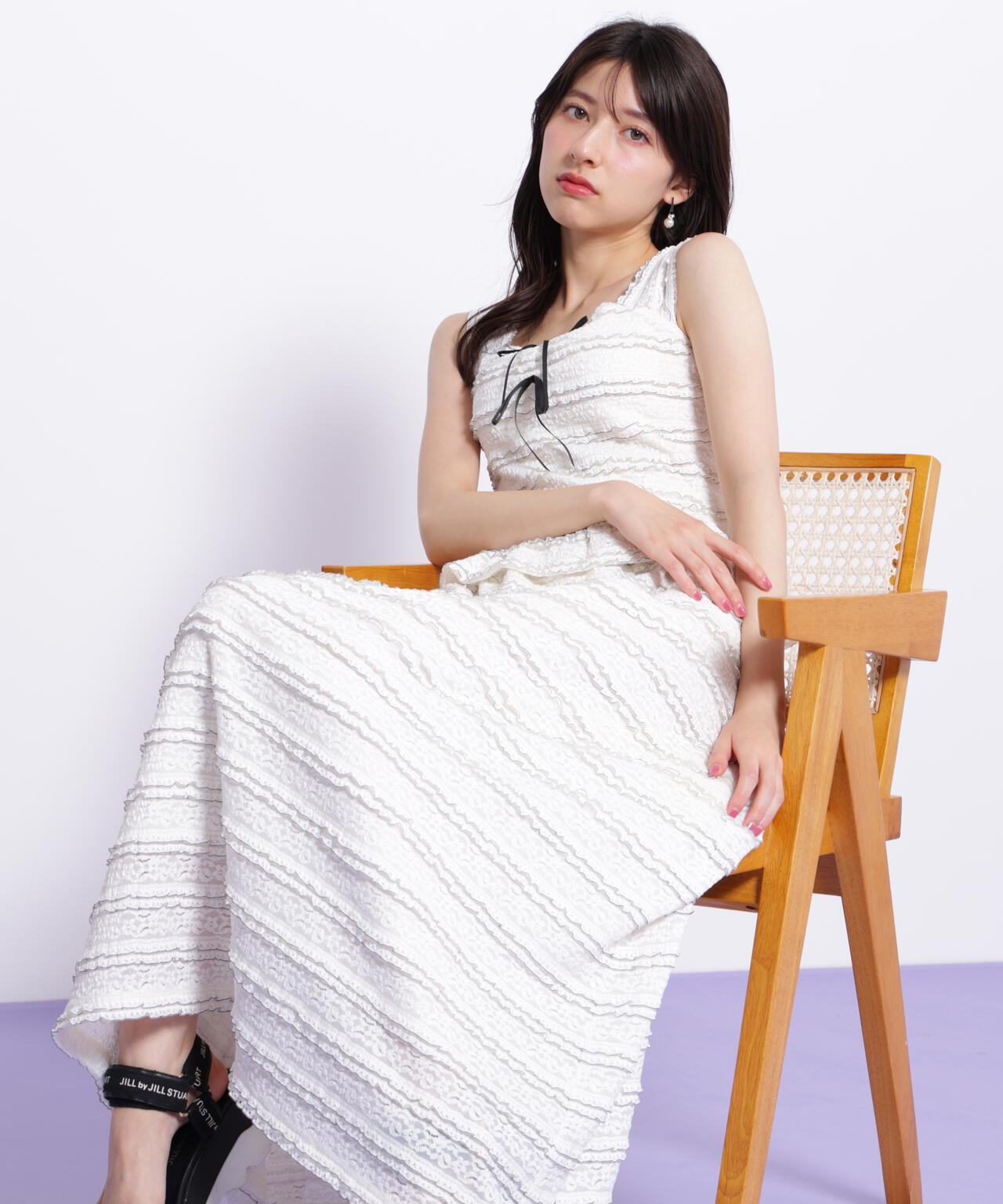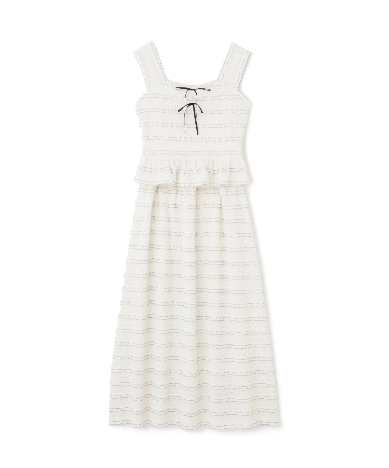 トップス:(外側)ポリエステル 97% ポリウレタン 3%(内側)ポリエステル 100%、スカート:(外側)ポリエステル 97% ポリウレタン 3%(別布部分)ポリエステル 100%(内側)ポリエステル 100%