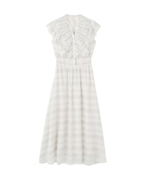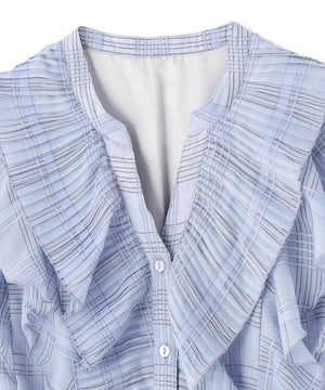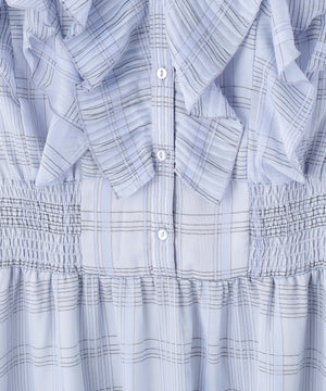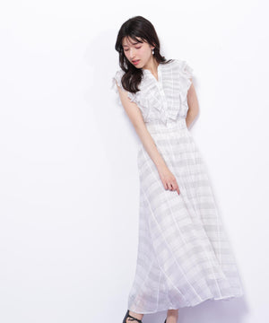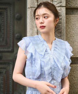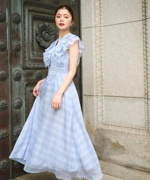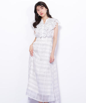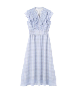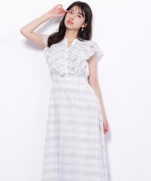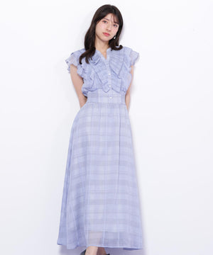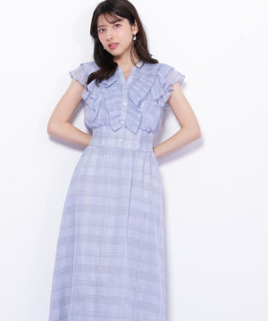季節を先取りするシアーチェック素材を使い、暑い夏でも涼しげな雰囲気のワンピース。1枚でも決まりますが、羽織りをプラスすると秋まで着られるカラーを揃えています。ファスナーをつけずラクな仕様に。ウエスト周りがすっきり見える切り替えとシャーリングがポイント。フロントには、JILL by JILL STUARTで人気のプリーツフリルを入れたデザインです。※撮影時照明の関係により、色味が違って見える場合がございます。