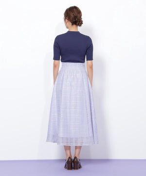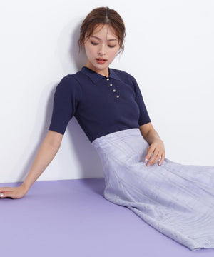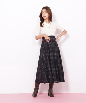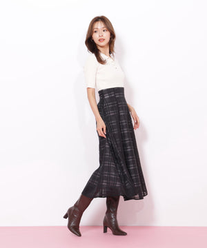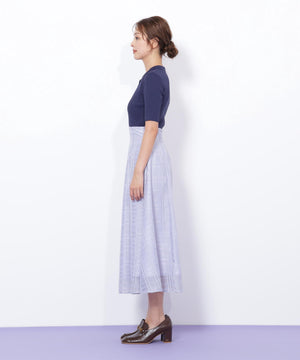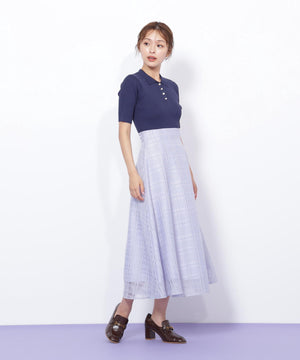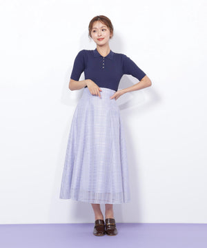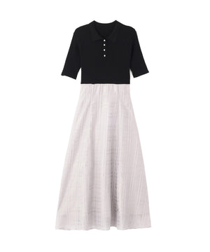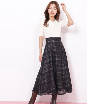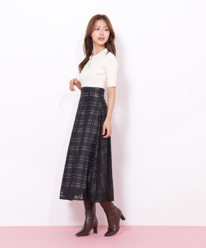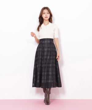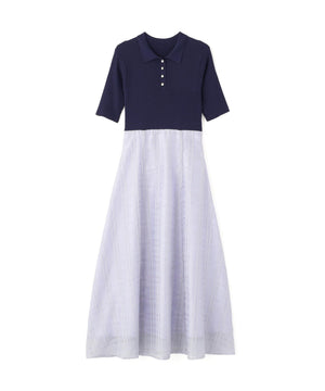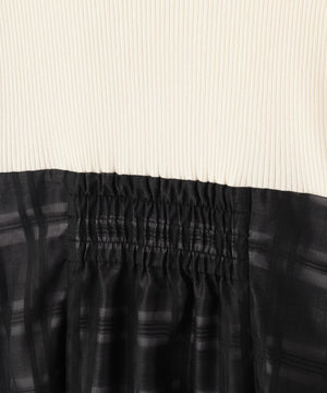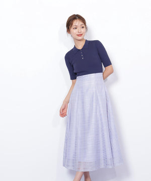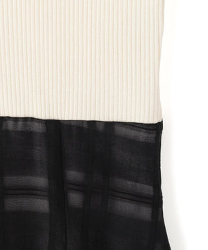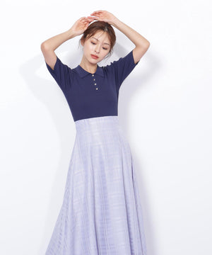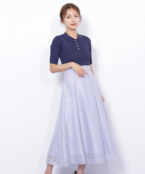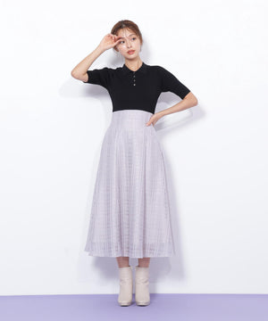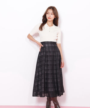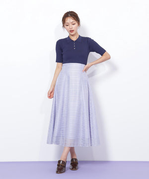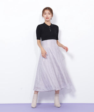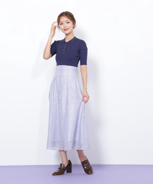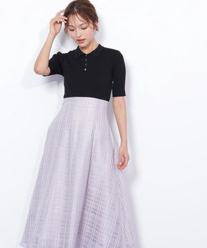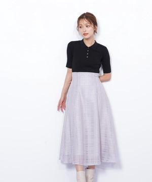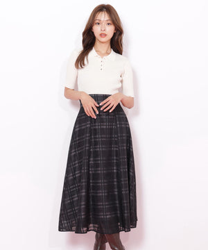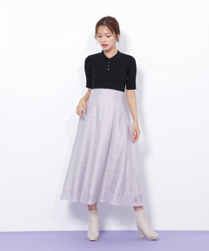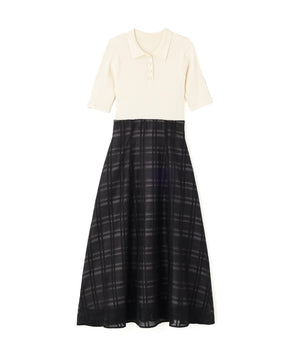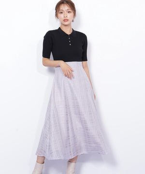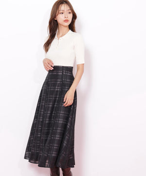 異素材の組み合わせが新鮮なドッキングワンピース。抜け感のあるポロ襟ニットと、シアーなチェック柄のフレアスカートをドッキングしたデザインです。動くたび軽やかに揺れるフェミニンなシルエットが魅力。一枚でコーディネートが華やかに決まります。※撮影時照明の関係により、色味が違って見える場合がございます。