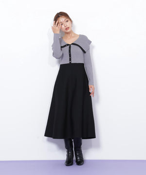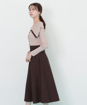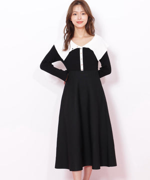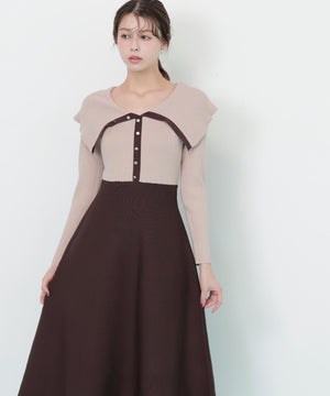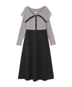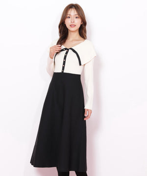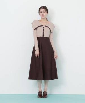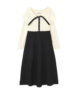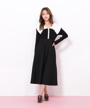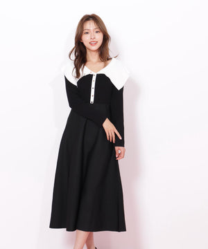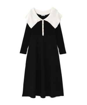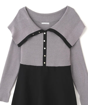 ビッグカラーニットワンピース