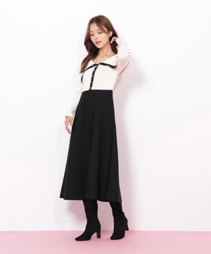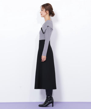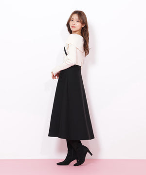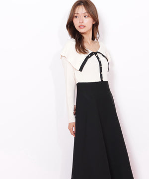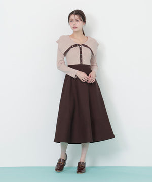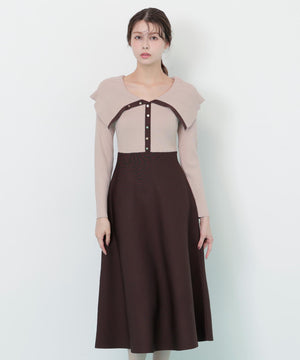 女性らしい抜け感のあるビッグカラーが映えるニットワンピース。大きな襟は上のボタンで開き具合を調整できるので、オフショル風にデコルテ見せも楽しめます。ウエスト位置の切り替えが高めなのでスタイルアップを狙えるデザイン。トップスは落ち感のあるニットを使い、スカートは軽いポリエステル素材を使用しています。※撮影時照明の関係により、色味が違って見える場合がございます。