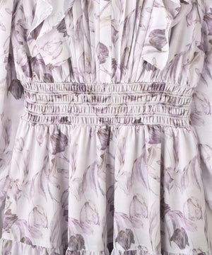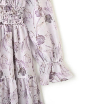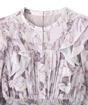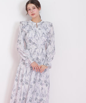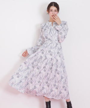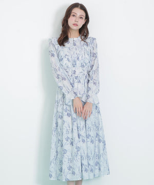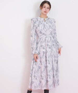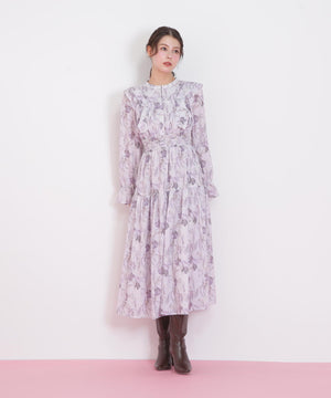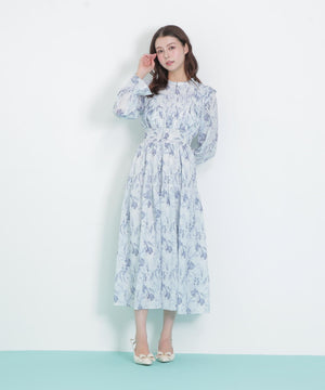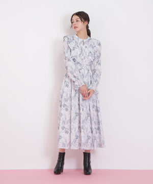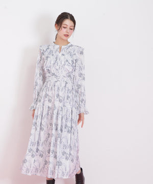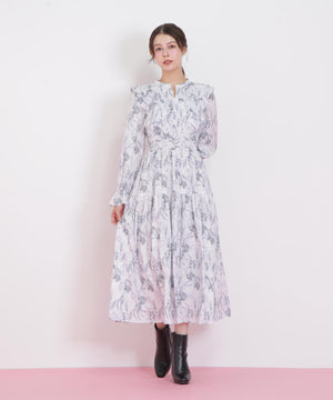 繊細なピンタックディテールと華やかな花柄が魅力のワンピース。