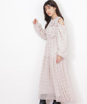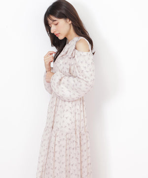 小花柄ボウタイワンピース