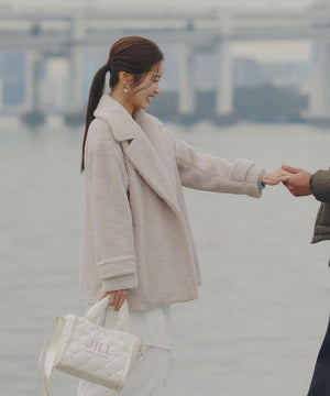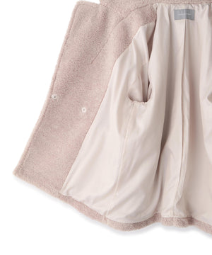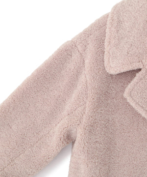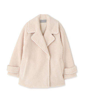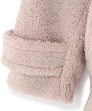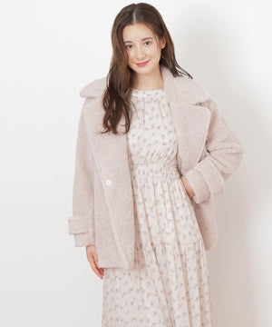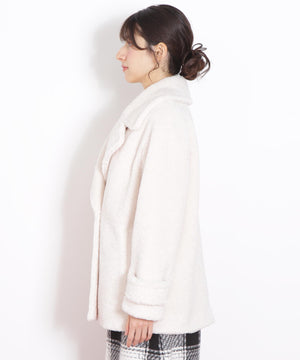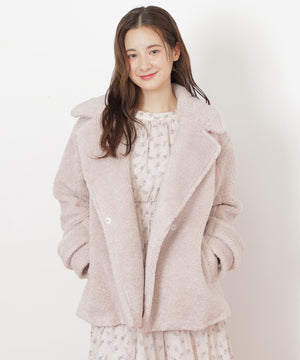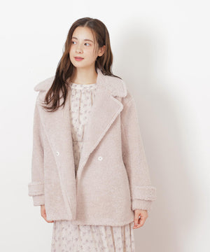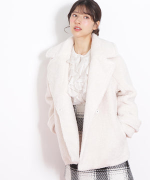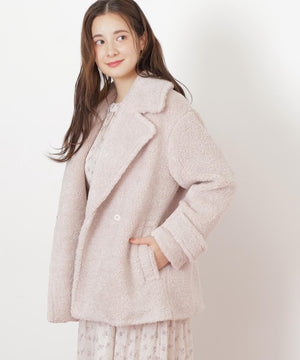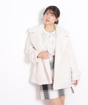 くるくるとカールしたボアを使用した愛らしいミドル丈のコート。ドロップショルダーでゆるっと感を出しつつ、身頃はすっきりとさせて、スタイルアップするサイズ感になっています。ヒップが隠れる丈感なので、ミニボトムもパンツも合わせやすいアウターです。※撮影時照明の関係により、色味が違って見える場合がございます。